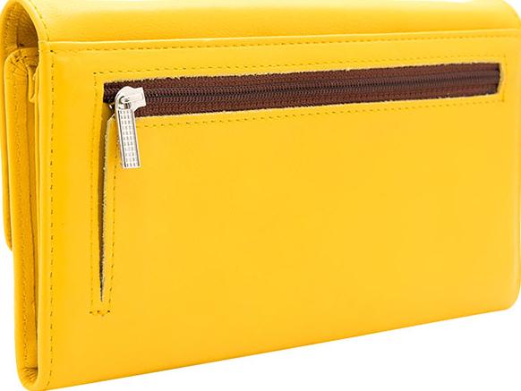 Ví/Bóp nữ da bò Huy Hoàng cao cấp 3 gấp màu vàng 3165
