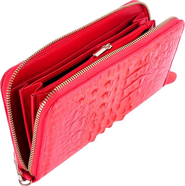 Ví/Bóp nữ da bò Huy Hoàng vân cá sấu lớn 3 gấp màu nâu đỏ 3154