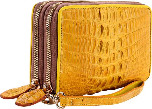 Ví/Bóp nữ da bò Huy Hoàng vân cá sấu lớn 3 gấp màu vàng bò 3155