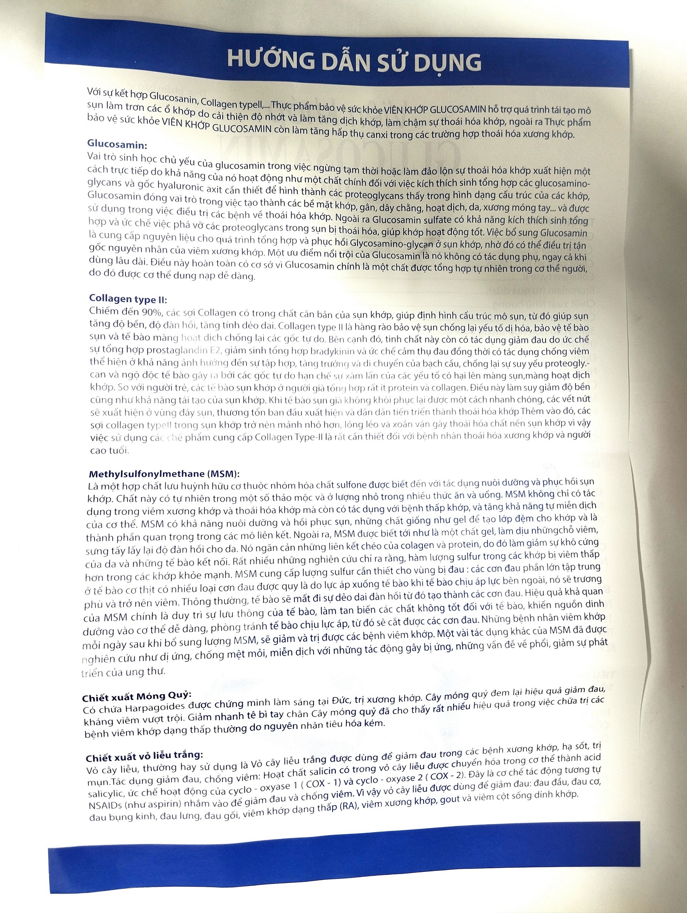 Nhiều người sử dụng viên khớp GLUCOSAMIN phản hồi