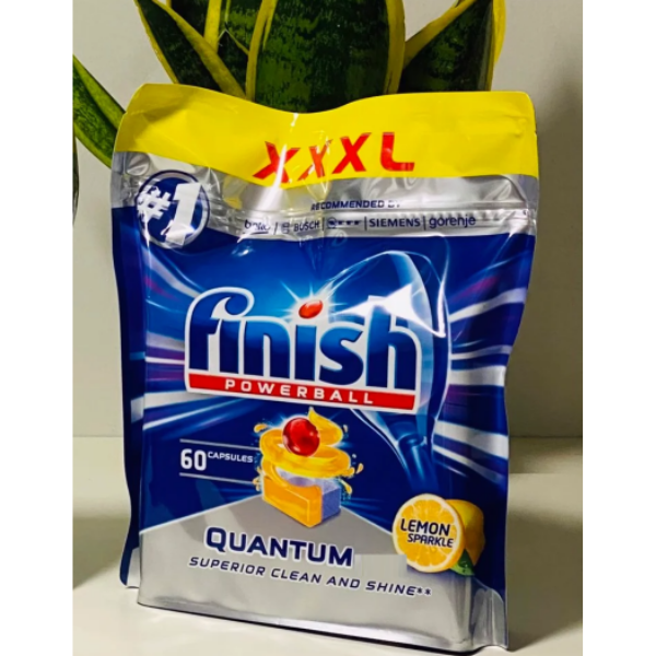 Túi 60 viên rửa chén Finish Quantum Dishwasher Tablets (là viên rửa chén cao cấp chuyên dùng cho máy rửa chén). Xuất xứ: Ba Lan (EU)
