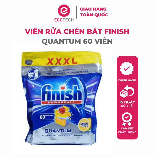- Một viên rửa chén Finish Quantum Dishwasher Tablets có thể làm sạch một lượng đồ rửa lên đến 16 bộ chén đĩa.