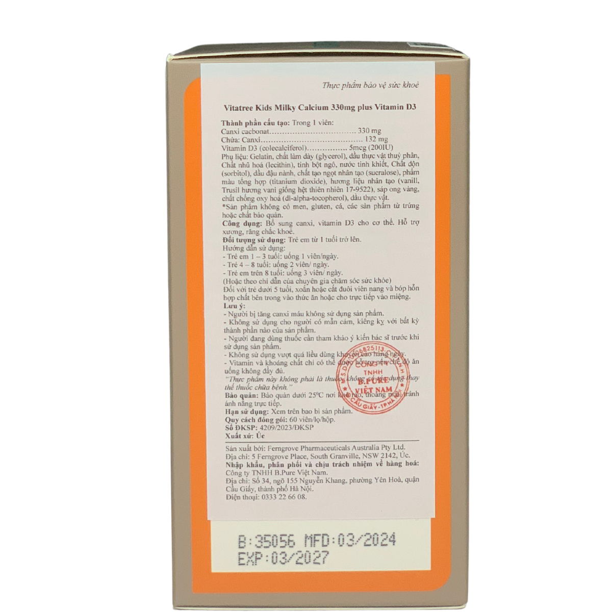 Mua tại TiktokViên Sữa Canxi Tăng Chiều Cao Vitatree Kids Milky Calcium 330mg plus Vitamin D3 Nhập Khẩu Từ Úc 60 viên/lọ