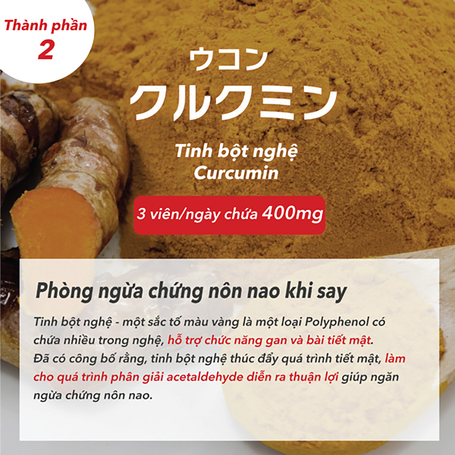 Kanzo Ukon hộp 10 gói 30 viên tiện lợi khi sử dụng và bảo quản, sản phẩm được chiết xuất từ các thành phần thiên nhiên có khả năng nhanh chóng phá vỡ acetaldehyde - thành phần độc hại có trong rượ u, bia, giúp làm giảm cảm giác nôn nao, mệt mỏi sau những bữa tiệc.