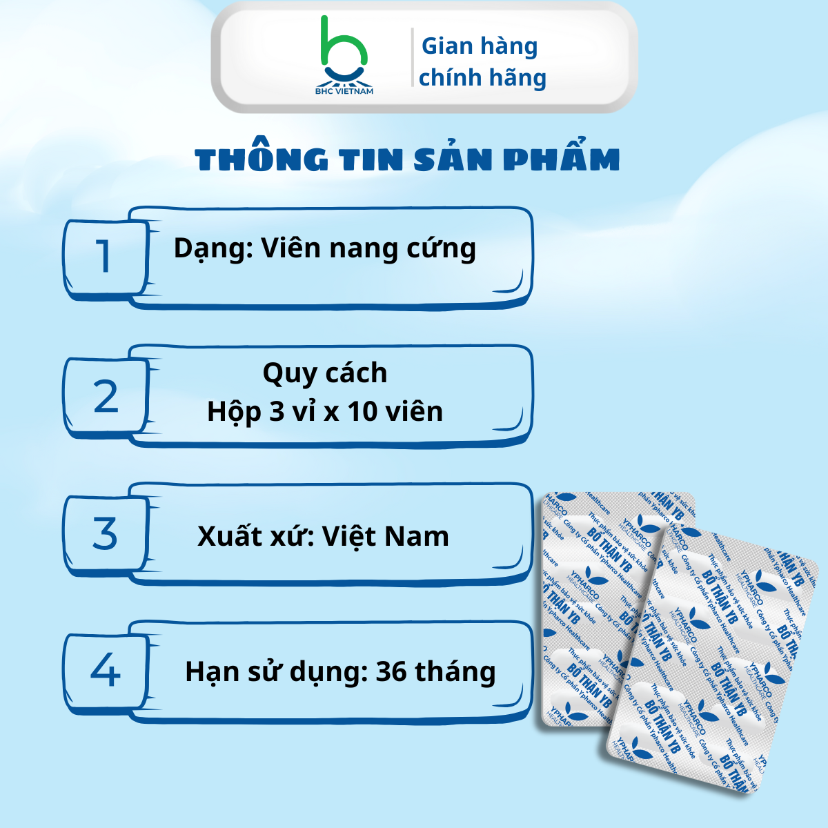 Viên Uống Bổ Thận YB – Hỗ Trợ Cải Thiện Sinh Lý Nam Giới, Bổ Thận Tráng Dương Tên sản phẩm: Viên uống Bổ Thận YB Dạng bào chế: Viên nang cứng Quy cách đóng gói: Hộp 3 vỉ x 10 viên Xuất xứ: Việt Nam Hạ...