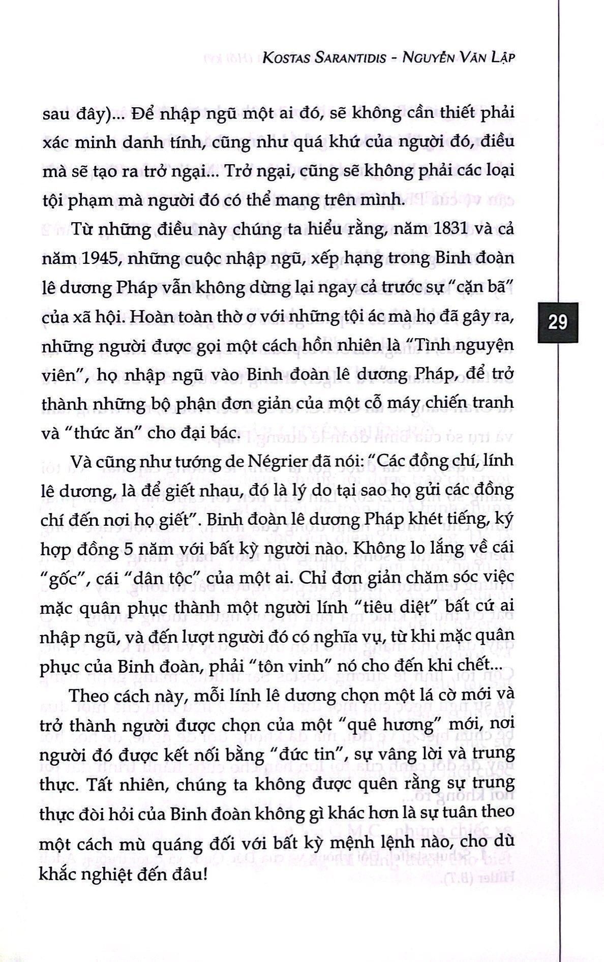 Nội dung cuốn sách được xây dựng dựa trên cơ sở tư liệu hồi ức, nhật ký của Anh hùng Lực lượng vũ trang nhân dân Việt Nam Kostas Sarantidis - Nguyễn Văn Lập. Là người có “một cuộc đời vô cùng thú vị và đầy phiêu lưu”, những câu chuyện, lời kể của Kostas Sarantidis đã được Hội những người Hy Lạp ở nước ngoài ghi chép, lưu giữ lại, bởi “những trải nghiệm này của ông, có lẽ là duy nhất trên thế giới”.