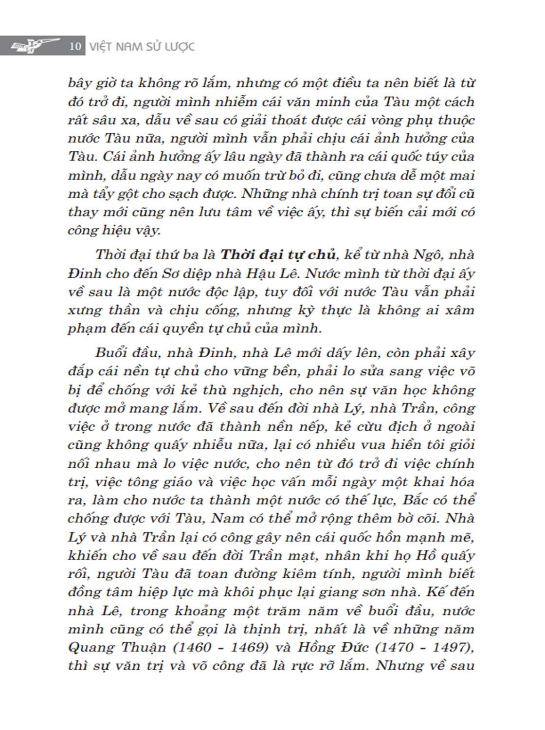 Thời đại thứ ba là Thời đại tự chủ, kể từ nhà Ngô, nhà Đinh cho đến Sơ diệp nhà Hậu Lê.