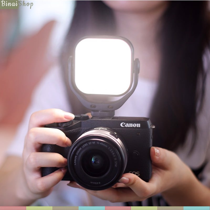 - Thiết kế thân máy nhỏ gọn với công suất 5W và nhiệt độ màu có thể điều chỉnh 3200-6500K, tích hợp giá hình chữ U, điều chỉnh xoay 360, hỗ trợ chụp đa góc, khoảng cách chiếu sáng khoảng 3-6 mét.