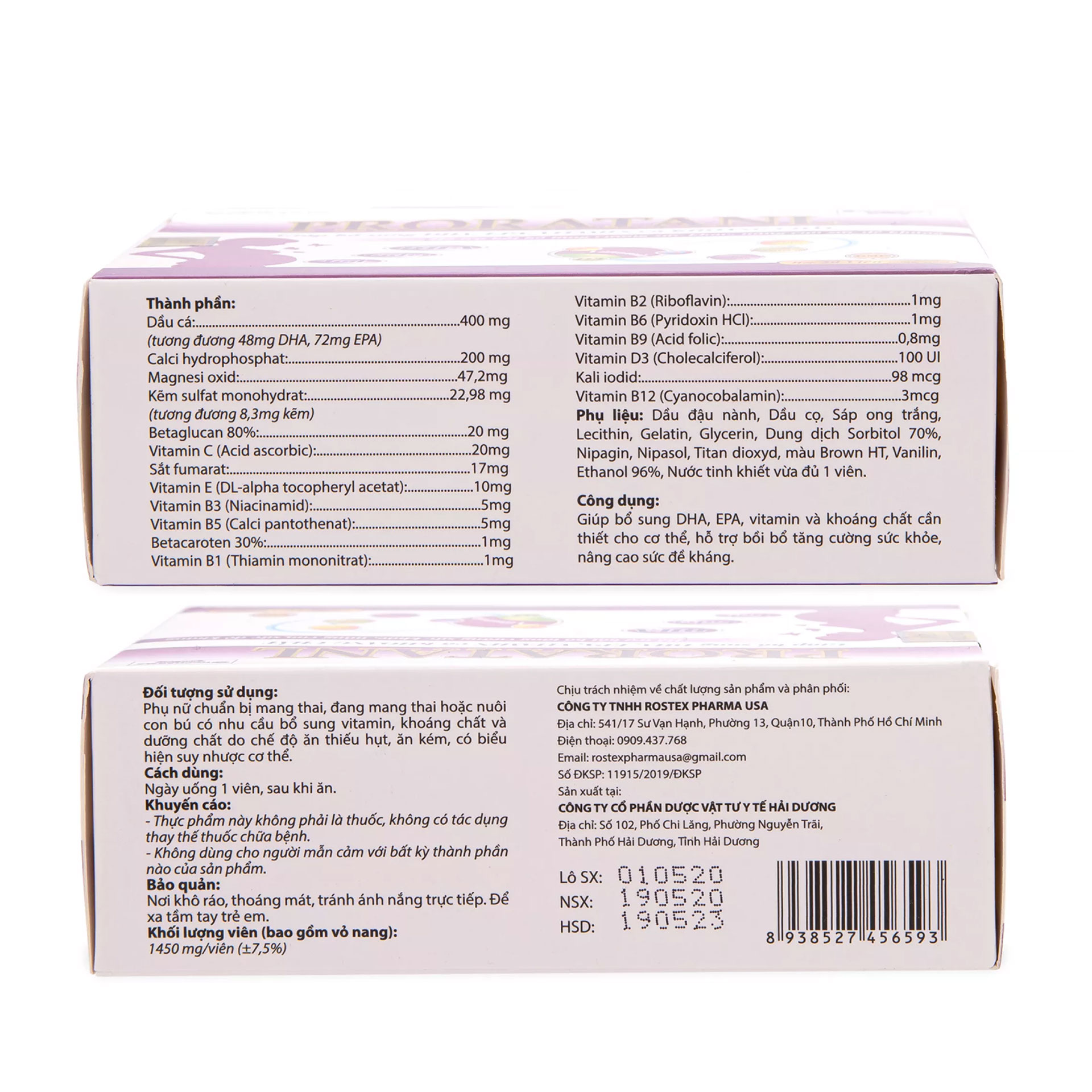 Vitamin tổng hợp cho bà bầu Proratanl được Bộ Y Tế cấp phép sản xuất, đạt chứng nhận An toàn vệ sinh thực phẩm chức năng, an toàn khi sử dụng.