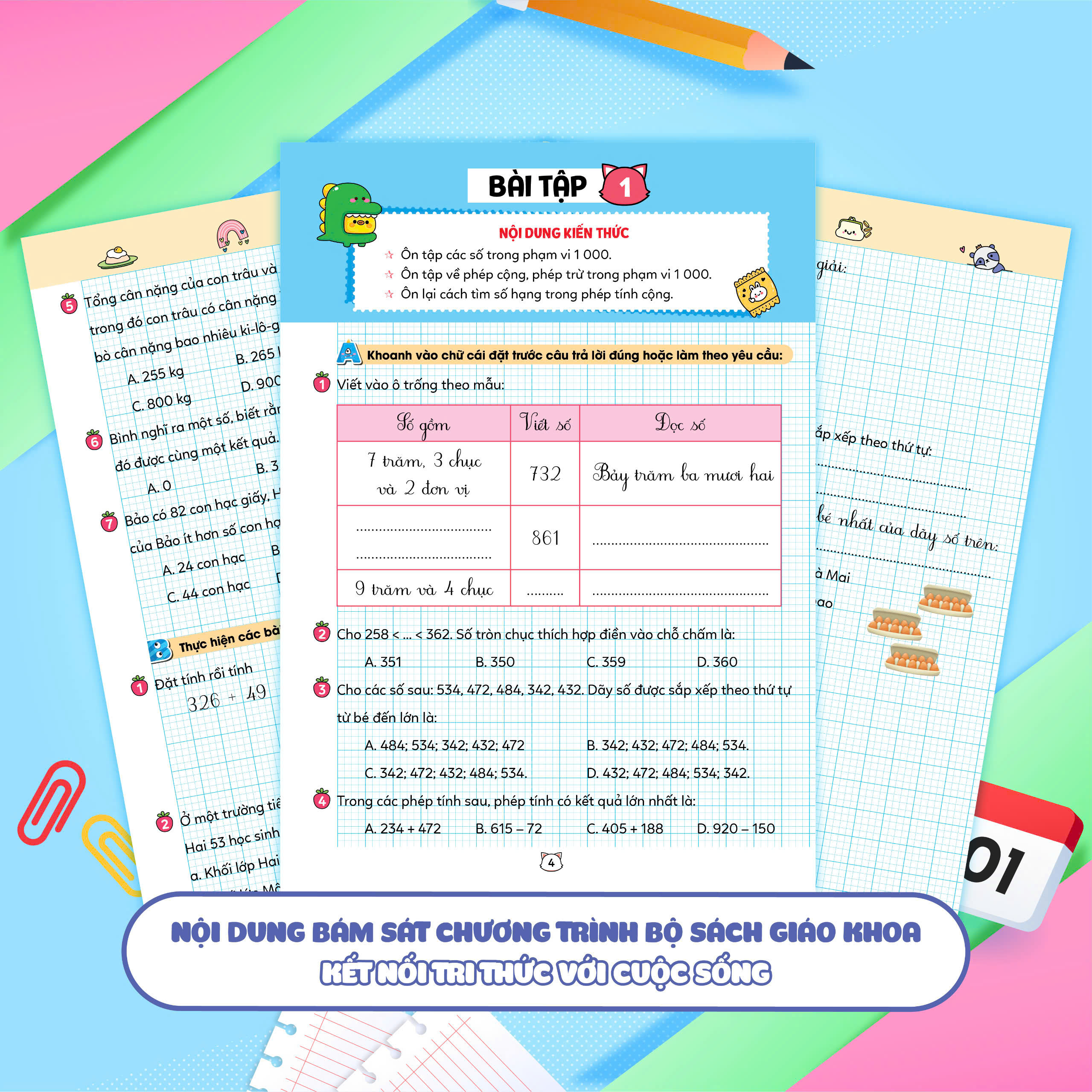 Cuốn "Vở bài tập Toán tăng cường" lớp 3 là tài liệu hữu ích giúp học sinh củng cố kiến thức toán học một cách hiệu quả. Được biên soạn theo sách giáo khoa "Kết nối tri thức với cuộc sống", cuốn sách này không chỉ cung cấp bài tập đa dạng mà còn bám sát chương trình học trên lớp. Bộ sách gồm tập 1 và tập 2, các em sẽ dễ dàng ôn tập và chuẩn bị cho các bài kiểm tra giữa kì và cuối kì. Đây thực sự là một người bạn đồng hành lý tưởng cho hành trình học toán của các em.