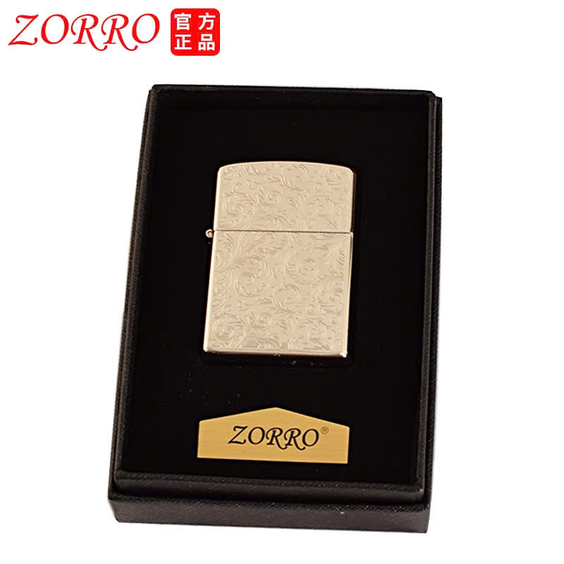 Bật lửa Zorro dùng xăng + đá (flint) Vỏ kim loại, phong cách retro, bền & dễ sửa Bật lửa Zorro dùng xăng (xăng bật lửa/chất lỏng nhẹ) kết hợp đá lửa (flint) — thiết