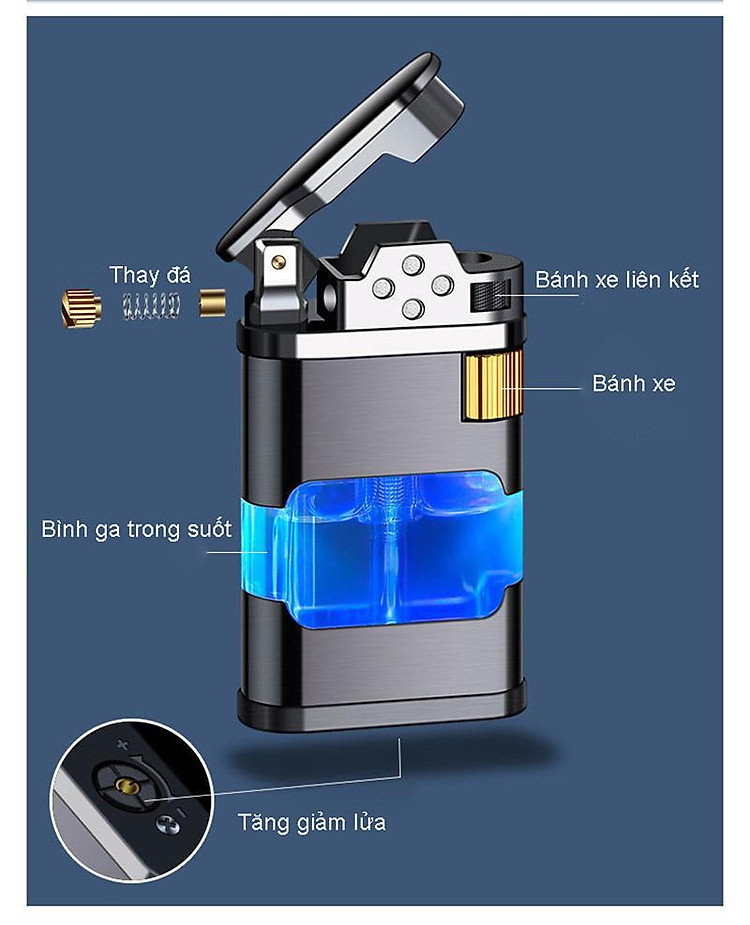 Bạn bè sẽ thích thú khi thấy bạn sử dụng sản phẩm độc đáo này Thể hiện đẳng cấp phái mạnh Hột quẹt lửa nhạy bén, bấc giữ lửa mạnh mẽ, âm thanh mở