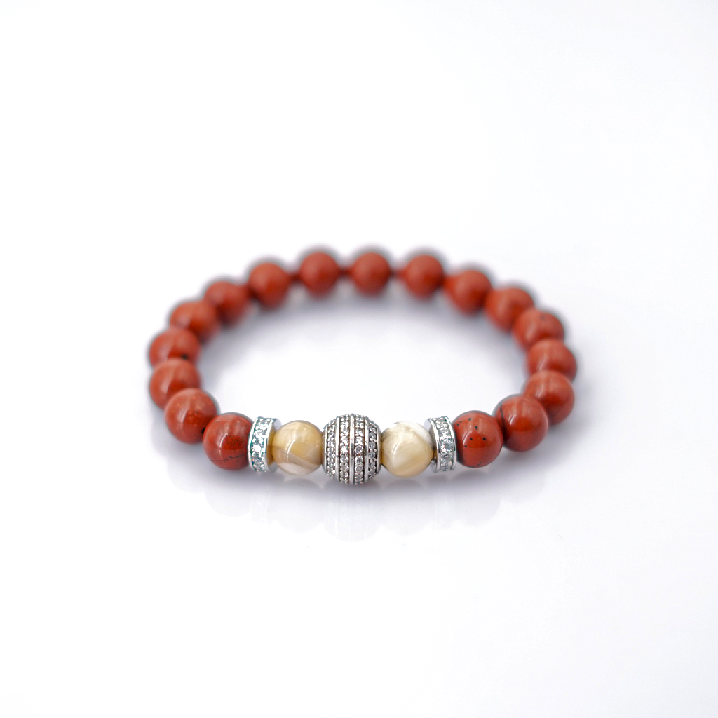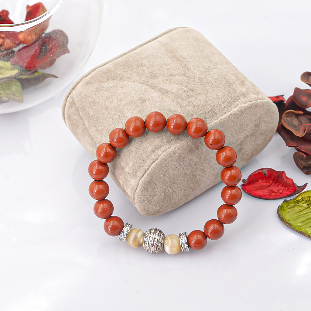 Loại tinh thể: Jasper đỏ Kích cỡ: 8mm Lu thống Bạc đính ngọc Đỏ.