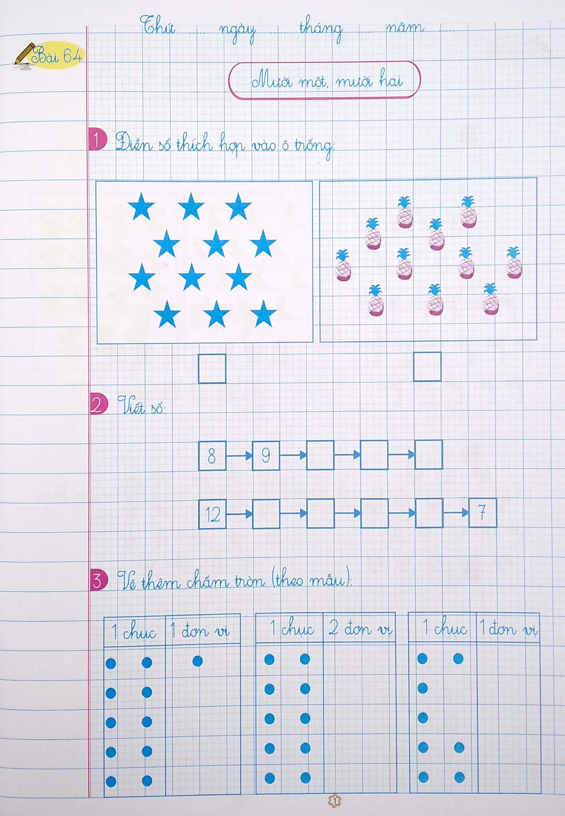 Vở ô li bài tập toán lớp 1 BÀI CÁC SỐ ĐẾN 20 Trang 1 Quyển 2 - DẠY TIỂU HỌC