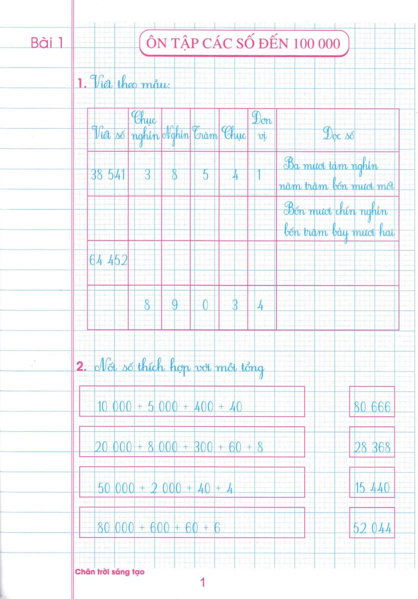Vở ô li bài tập toán 4 - quyển 1 được biên soạn theo chương trình SGK chân trời sáng tạo, giúp các em tự học tại nhà một cách hiệu quả. Đặc biệt, hình thức vở kẻ ô li giúp các em rèn viết chữ sạch, đẹp, trình bày rõ ràng. Đây là tài liệu bổ ích giúp các em học sinh học tốt chương trình Toán trên lớp.