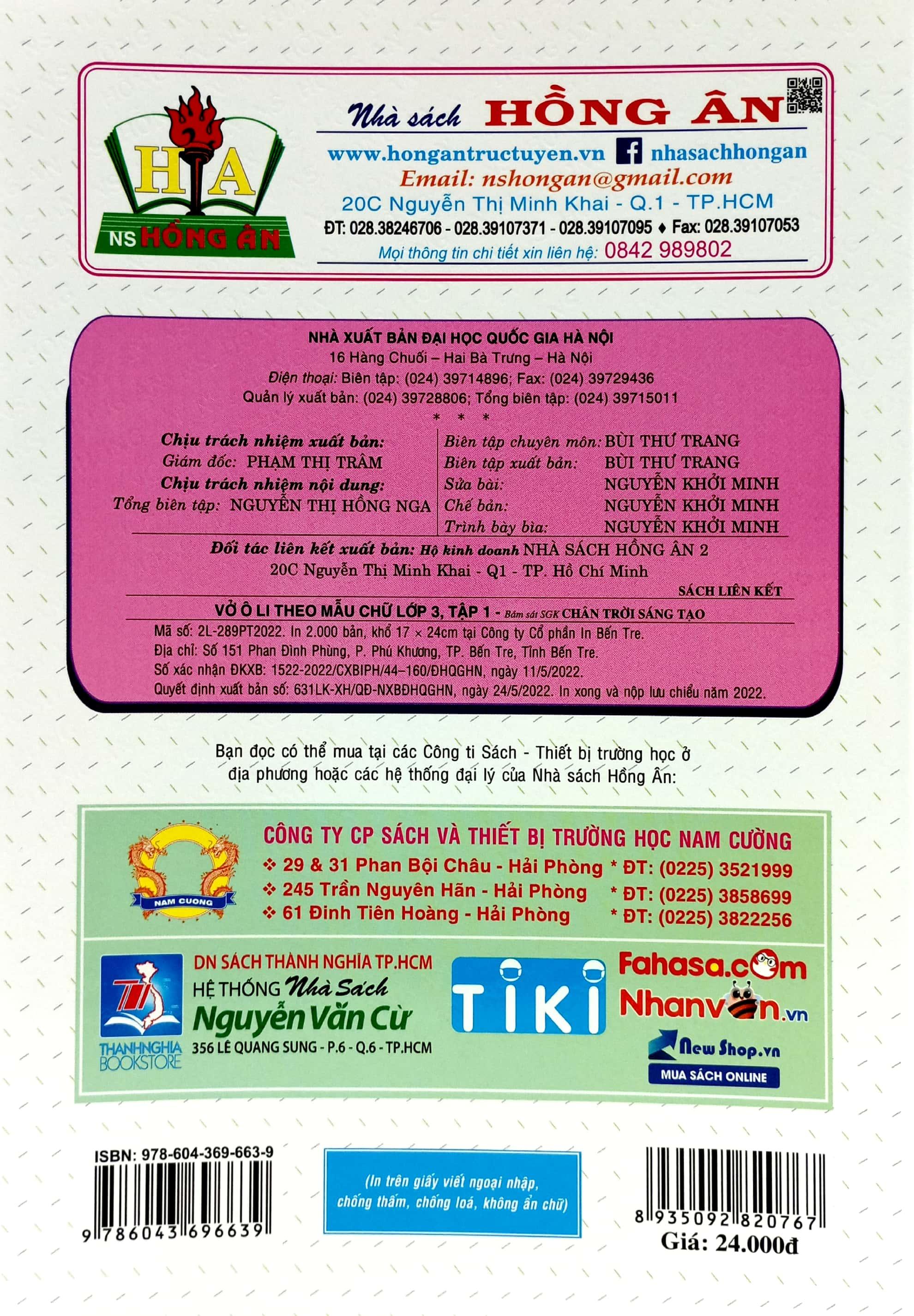 Sách Vở Ô Li Theo Mẫu Chữ Lớp 3 – Tập 1 (Bám Sát SGK Chân Trời Sáng Tạo) giới thiệu tới các em học sinh từ các nét chữ cơ bản đến các từng vựng tiếng Việt, ca dao, tục ngữ giúp các em mở rộng được vốn từ ngữ cũng như rèn luyện được chữ viết.
