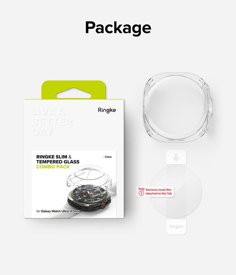 Vỏ ốp kèm dán cường lực Galaxy Watch Ultra RINGKE Slim & Glass Ưu điểm sản phẩm - Thương hiệu RINGKE Hàn Quốc, vừa vặn hoàn toàn Galaxy Watch Ultra (47 mm). - Thiết kế