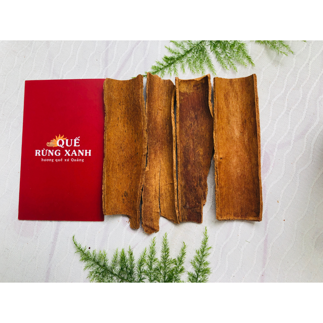 Tọa lạc tại thung lũng thượng du các sông thuộc huyện Trà Bồng tỉnh Quảng Ngãi, hội tụ các điều kiện tự nhiên đã làm nên những rừng quế bạt ngàn vang danh MIỀN HƯƠNG QUẾ gắn bó với đồng bào dân tộc Kor hàng ngàn năm. Từ lâu đời quế là một trong thành phần không thể thiếu trong các bài thuốc đông y hoặc gia vị trong chế biến các món ăn hằng ngày. Vỏ quế thanh đã cạo vỏ là phần lớp vỏ bóc từ thân cây quế có độ tuổi từ 10 năm trở lên từ rừng Trà Bồng – Quảng Ngãi. Quế có mùi thơm đặc trưng, vị cay the. Với truyền thống lâu đời trong lĩnh vực thuốc nam - Hơn 30 năm kinh nghiệm kinh doanh quế ở phố Đông y Sài Gòn, lần đầu tiên Quế Rừng Xanh mang giá trị cây quế đến với người tiêu dùng một cách tiện lợi nhất. THÀNH PHẦN: Quế thanh nguyên chất đã cạo vỏ. Không có chất bảo quản. CÔNG DỤNG: Theo Y Học Cổ Truyền, Quế là 1 trong Tứ Đại Danh Dược (Sâm - Nhung - Quế - Phụ), được ví như Sâm. Có thể giúp: