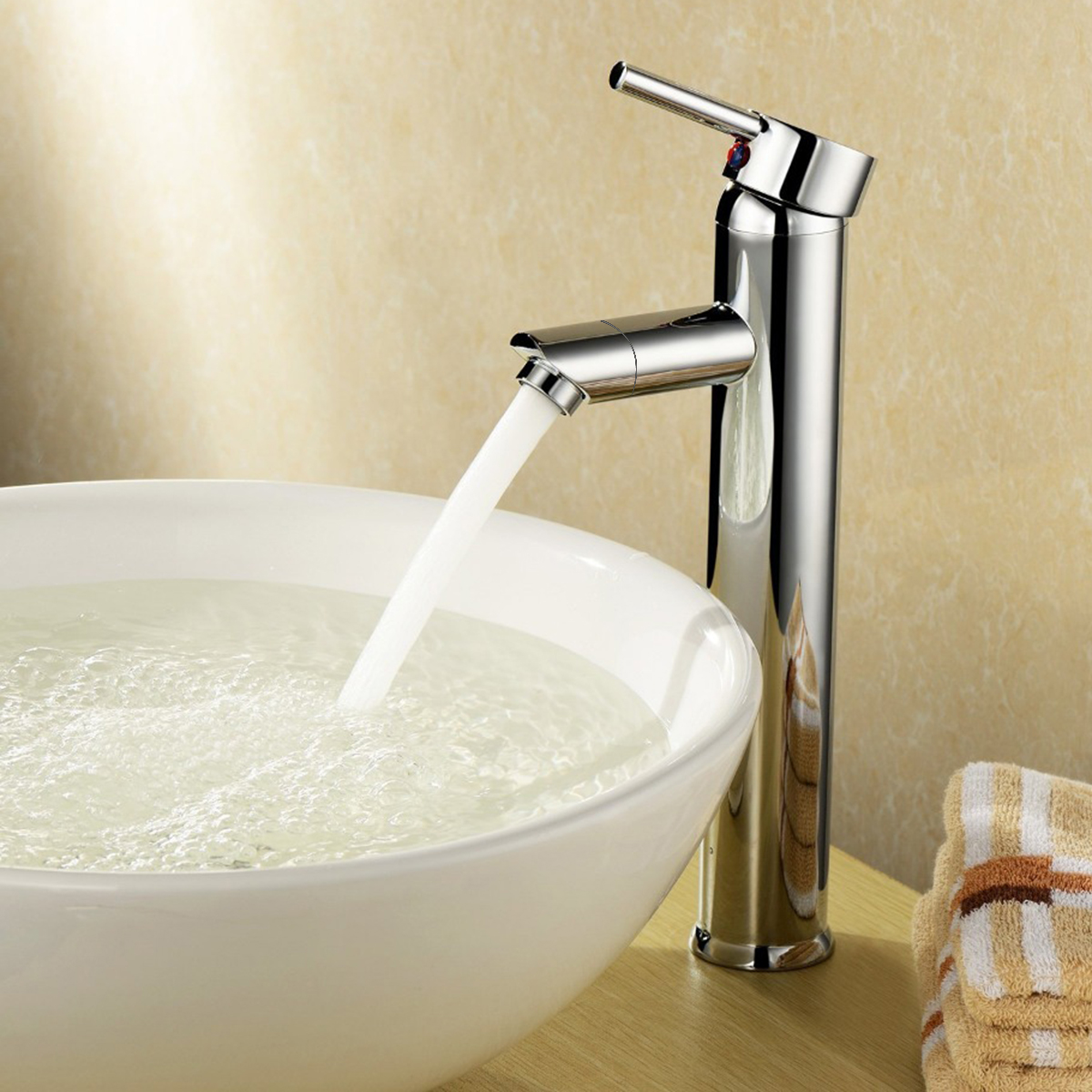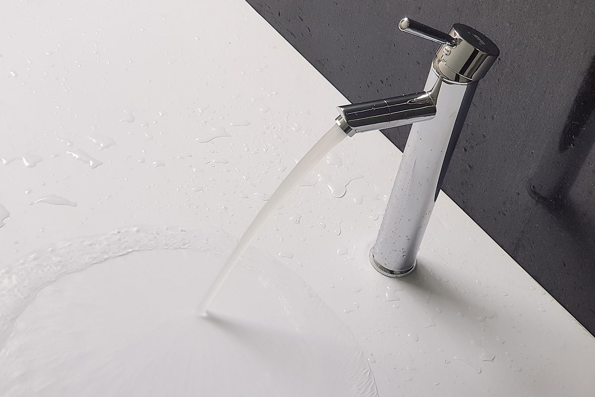 Thân vòi cao với thiết bo tròn, kết hợp mũi vát, tạo cảm giác khỏe khoắn và sang trọng cho phòng tắm