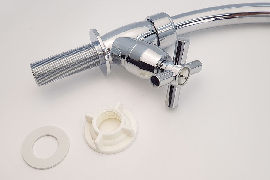 Van được định vị chặt chẽ bắng nắp chụp ren được thiết kế riêng biệt. Tay xoay được gắn với trục van bằng ốc vít, giúp tay xoay chắc chắn và ổn định hơn.