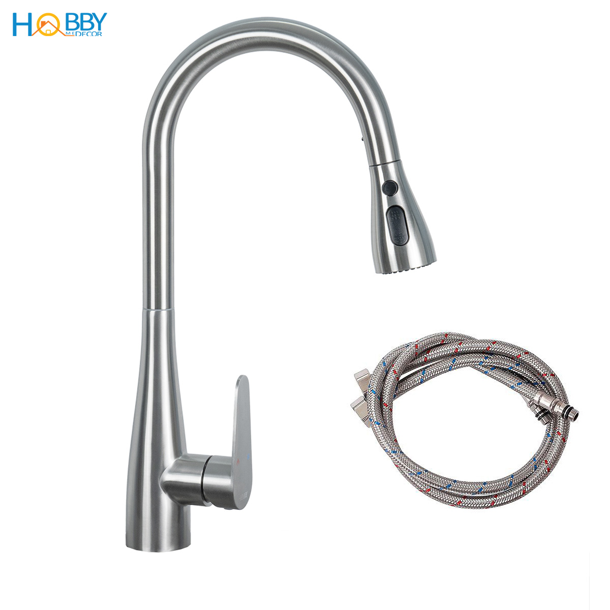 Vòi rửa chén nóng lạnh dây rút inox 304 xước mờ Hobby home decor VDR13
