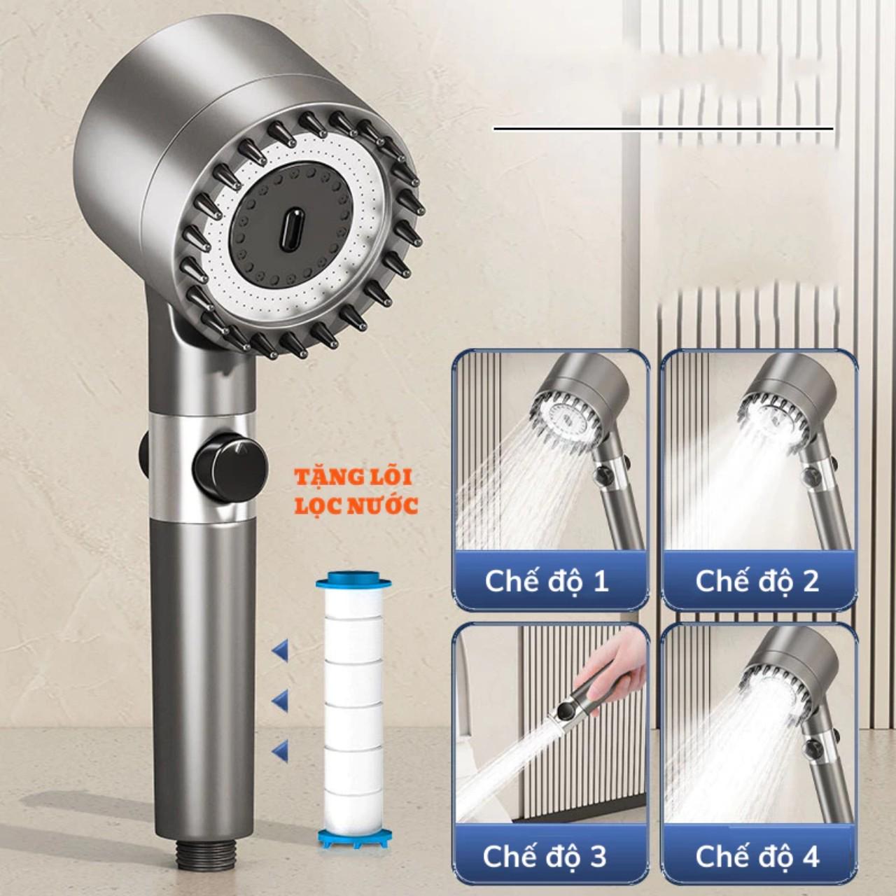 Vòi sen tăng áp, đầu vòi hoa sen Masage 4 trong 1, 3 chế độ áp suất cao tiết kiệm nước lõi cotton lọc cho nhà tắm