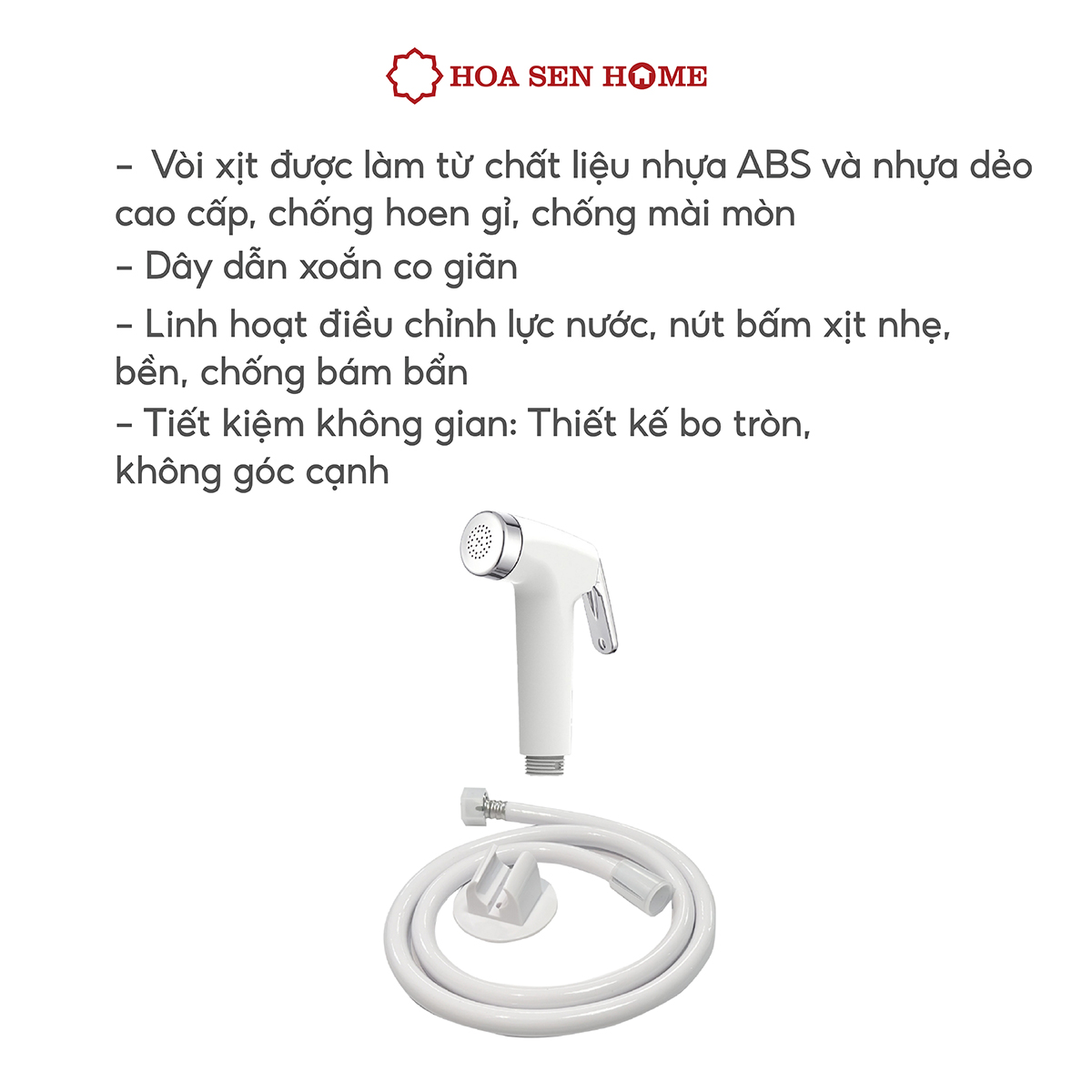 - Bộ vòi xịt vệ sinh được làm từ chất liệu inox cao cấp không gỉ và nhựa ABS mạ Chrome siêu bền có khả năng chống biến dạng khi xảy ra va chạm hoặc