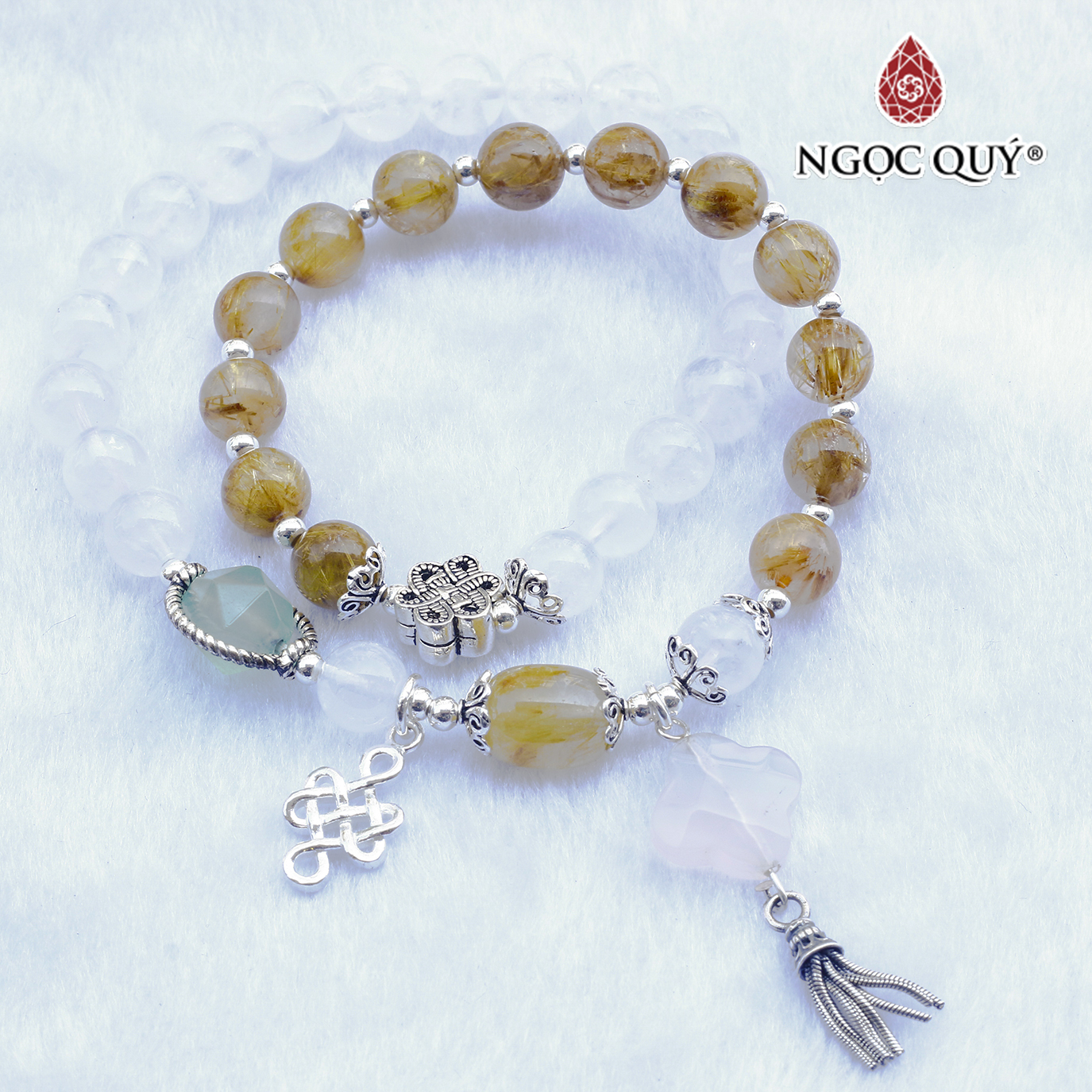 Vòng tay phongg thủy Mắt hổ vàng tâm 8mm + Thạch Anh Tóc nâu by Anqlo là sản phẩm được chế tác tinh xảo, có độ hoàn thiện cao bởi các nghệ nhân lâu năm