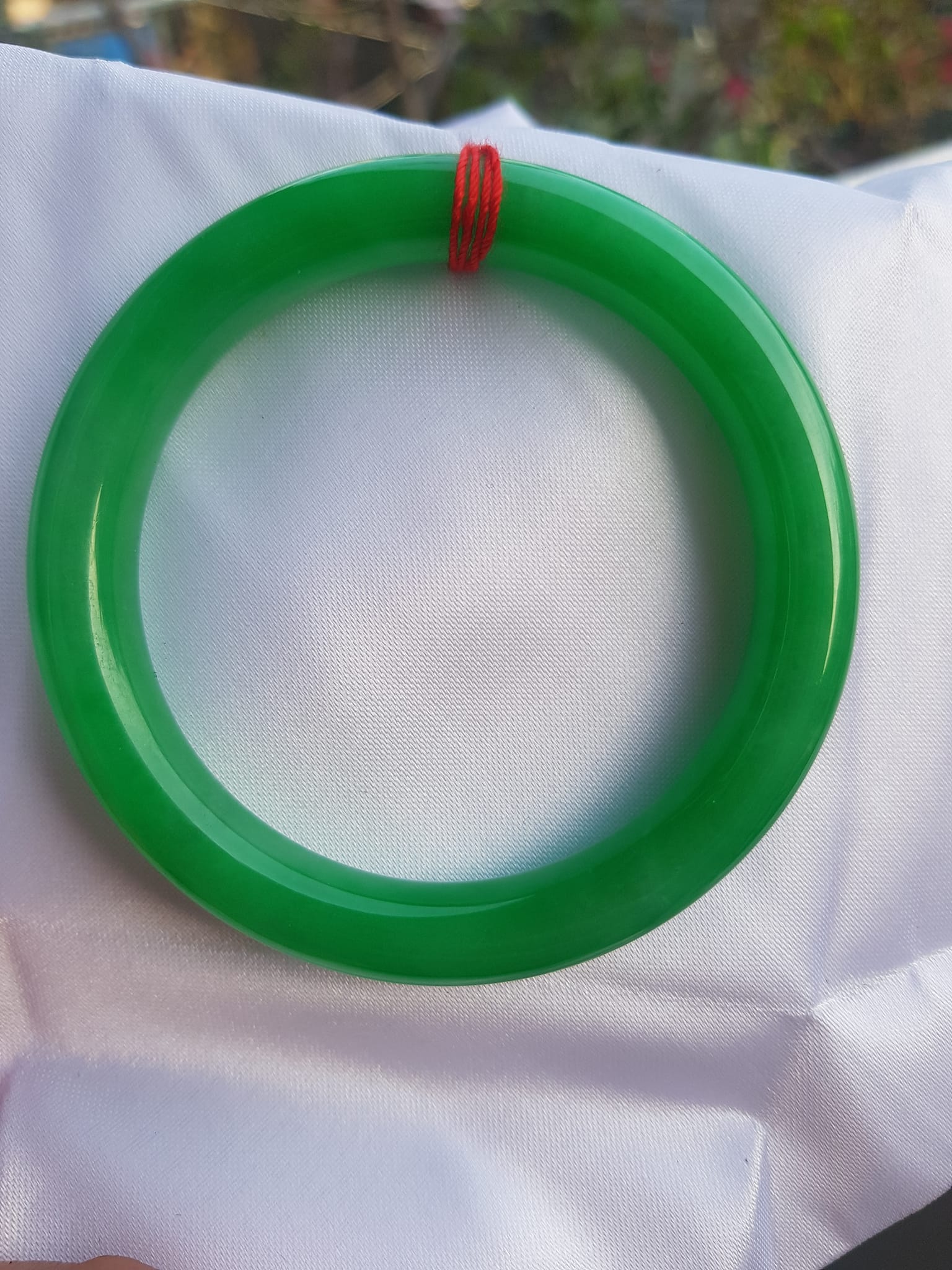 Vòng cẩm thạch Đ Lý 52mm x dầy 7,8mm màu xanh lá tươi hợp Nữ mệnh Mộc mệnh Hỏa 52kg - 56kg đeo ạ