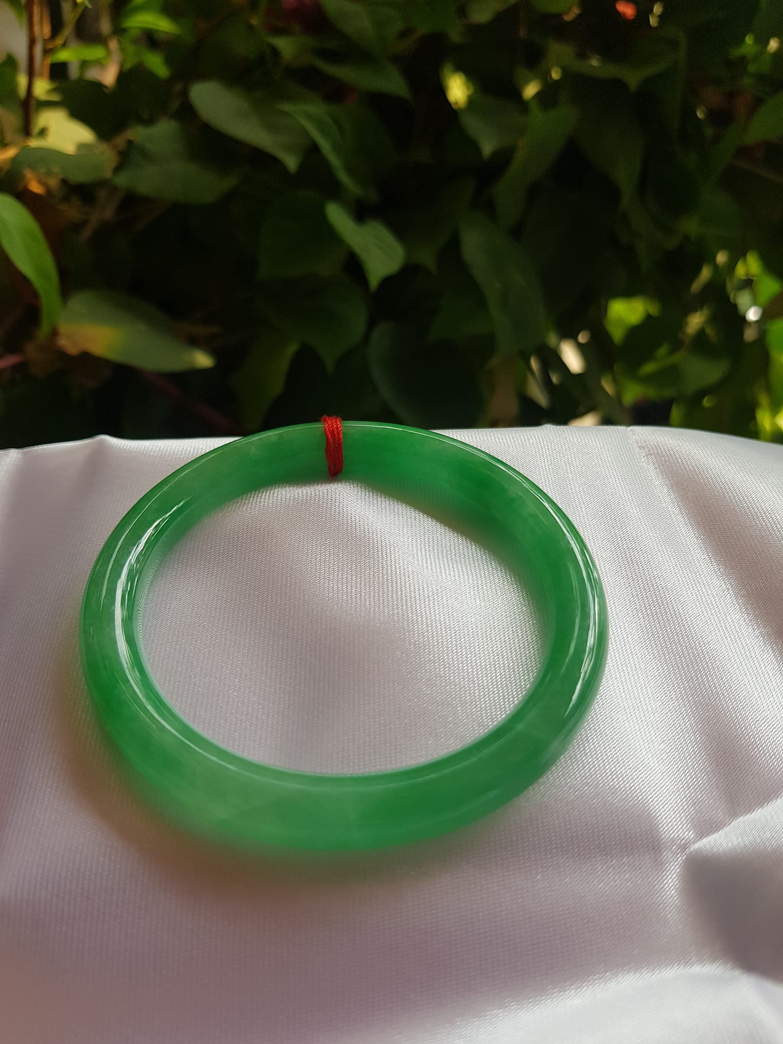 Vòng cẩm thạch Đ Lý 52mm x dầy 7,8mm màu xanh lá tươi hợp Nữ mệnh Mộc mệnh Hỏa 52kg - 56kg đeo ạ