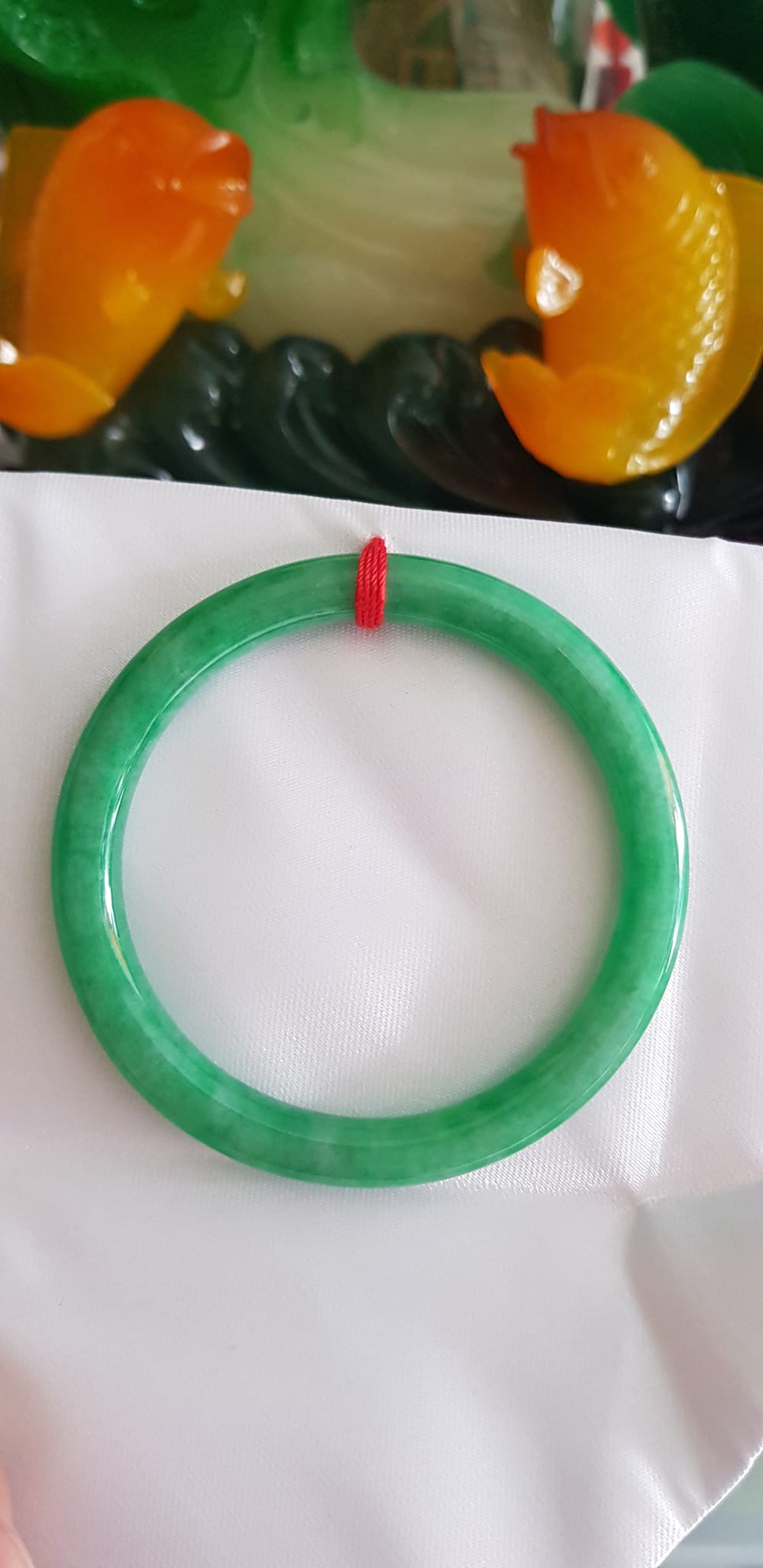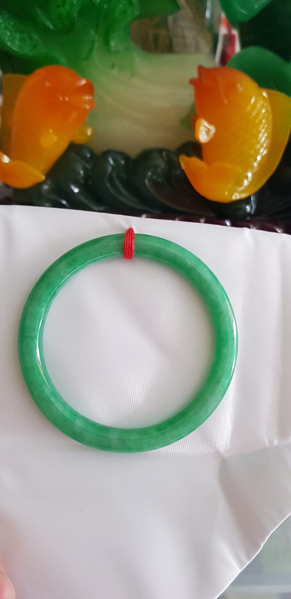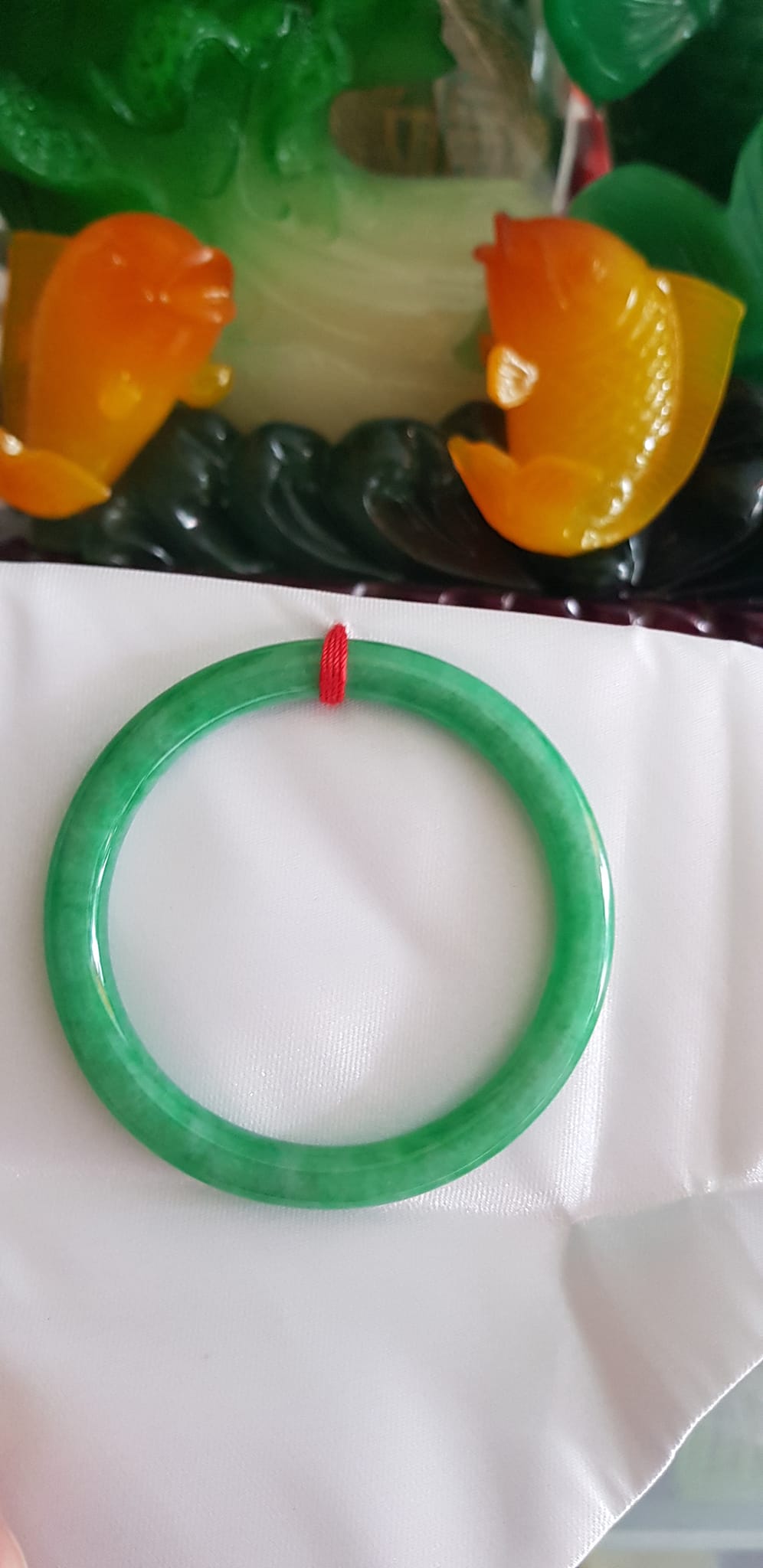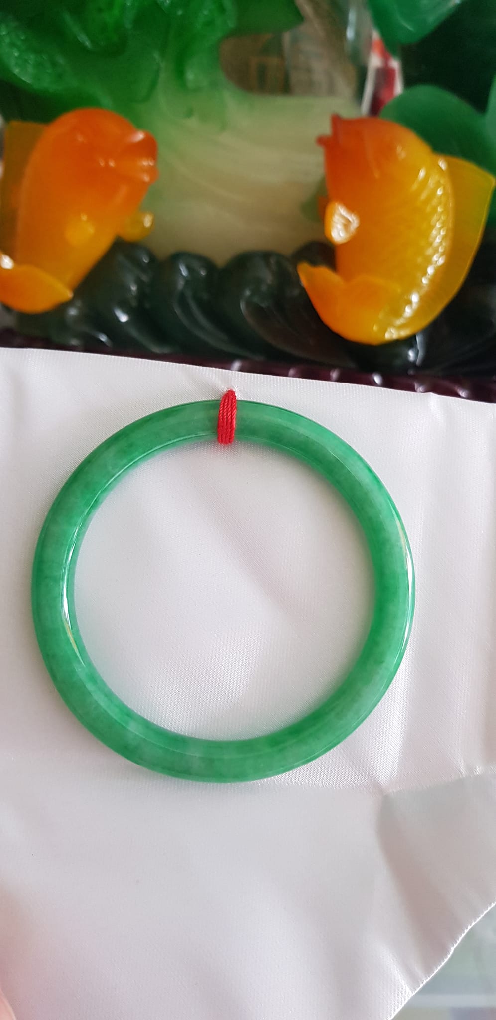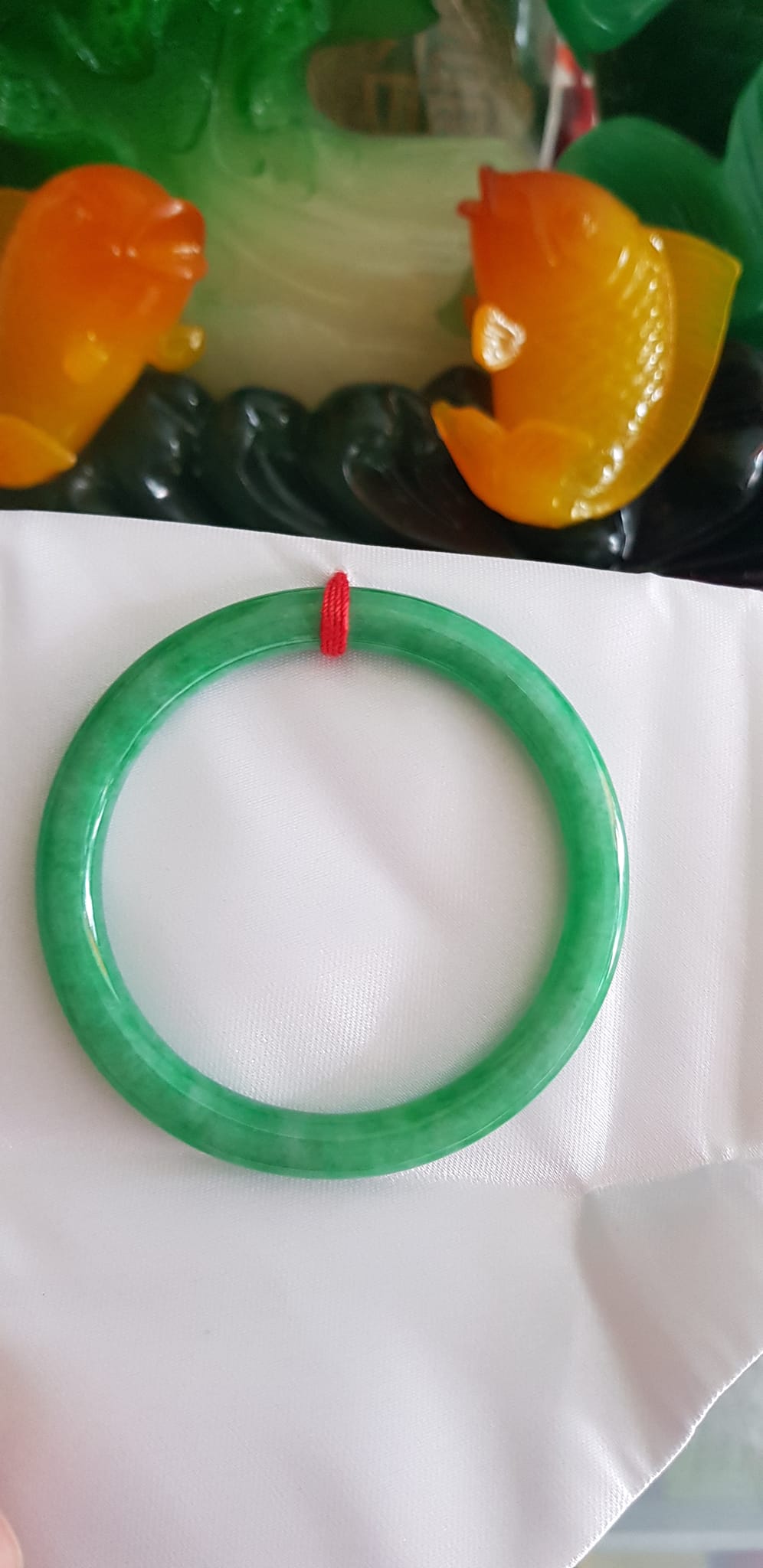 Vòng CẨM THẠCH DLý 49 Ni 49mm x cọng 7mm Màu Xanh Lá Đậm Hợp Nữ mệnh Mộc Hỏa Cân nặng 45kg -> 51kg đeo xinh tay ạ Sản phẩm này là tài sản