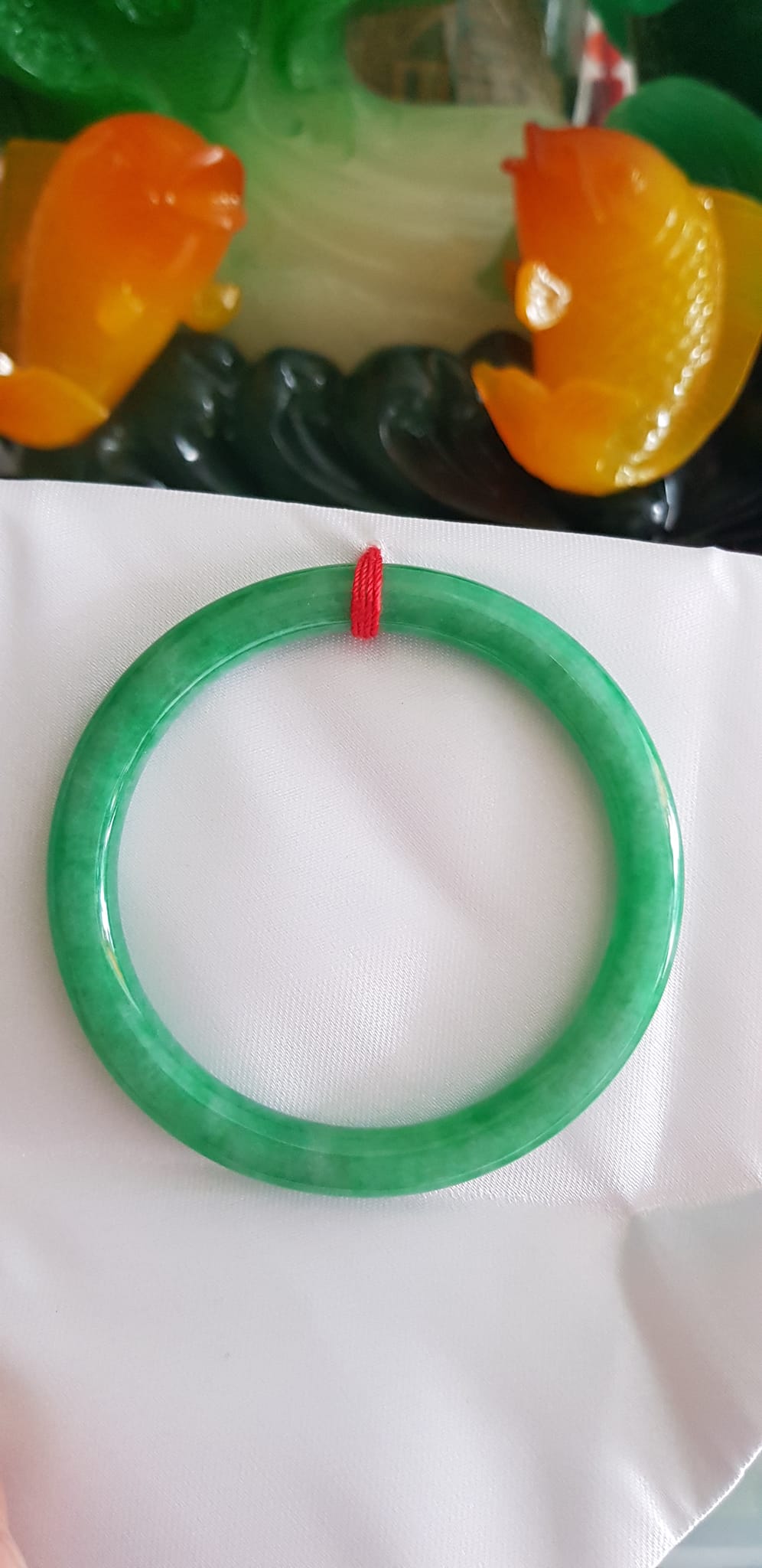 CHIẾC VÒNG TAY PHONG THỦY ĐÁ CẨM THẠCH LÝ ĐẸP K 54MM x DẦY 8MM MÀU XANH LÁ ĐỀU BÓNG ĐẸP NỮ MỆNH HỎA MỘC NỮ CÂN NẶNG 53kg đến 64kg Đeo Đẹp Tay ạ