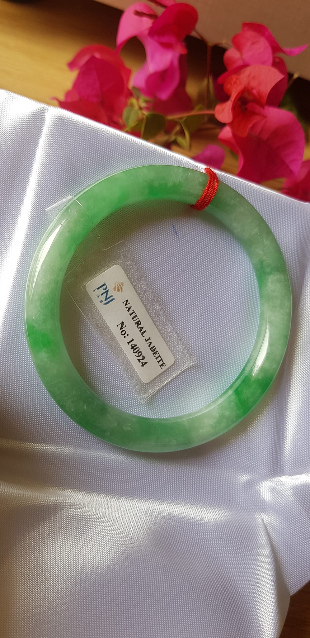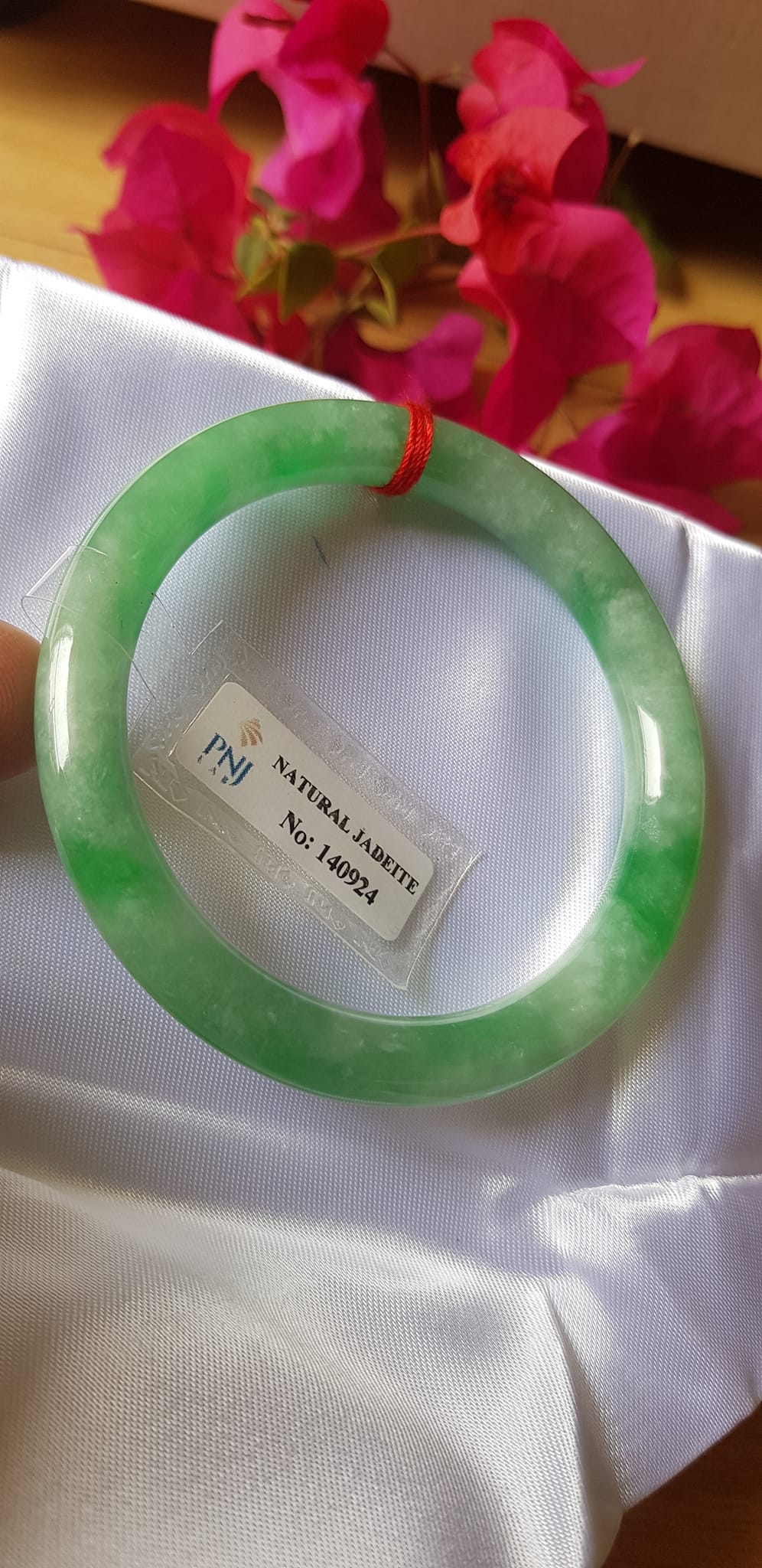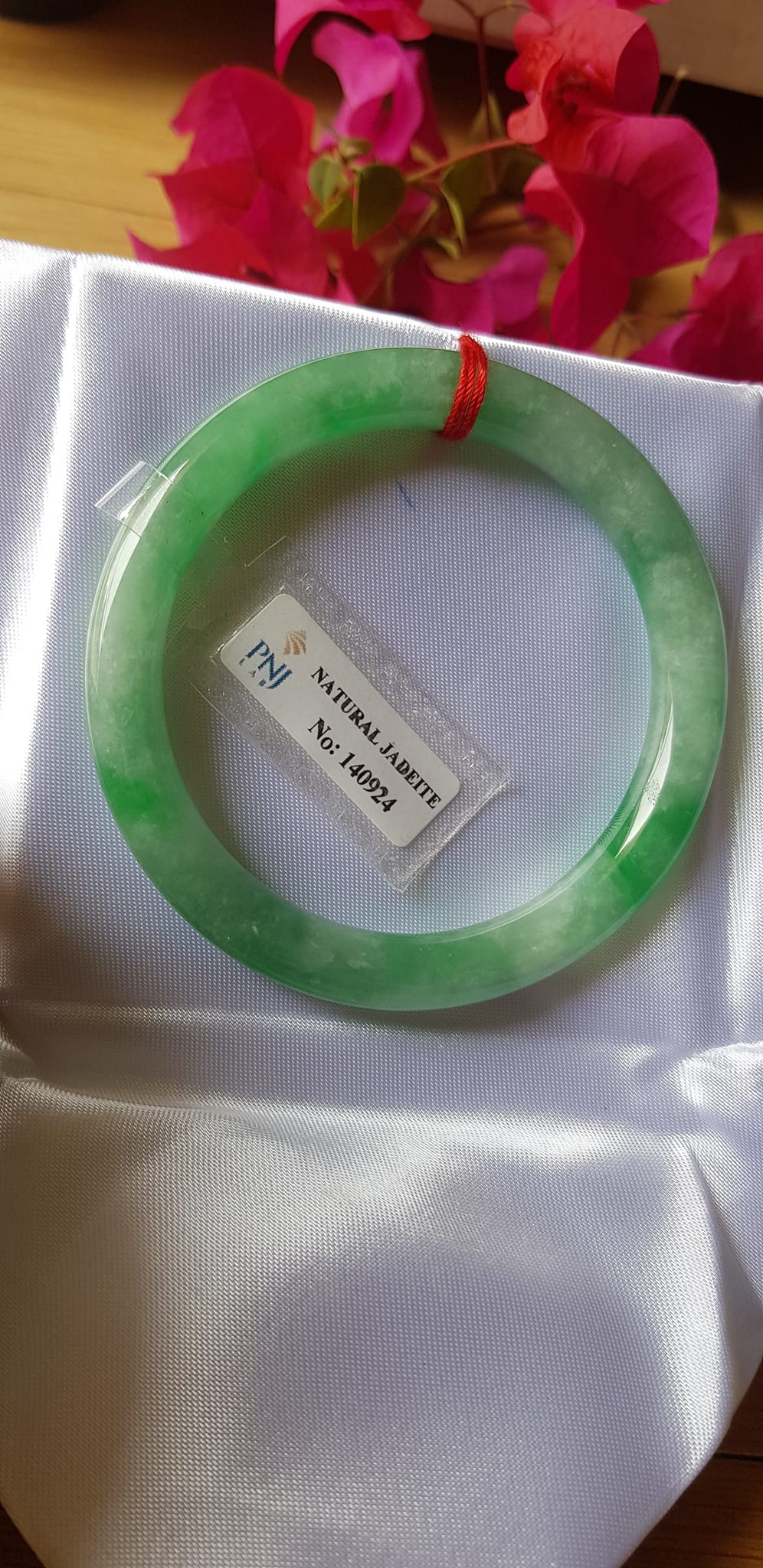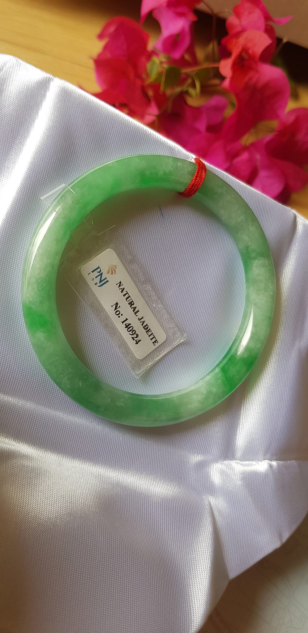 Vòng Cẩm thạch tự nhiên Đậu Nở Lý Sịn 52mm chột 8mm vòng kiểm định có giấy chứng nhận Pnj No 140924