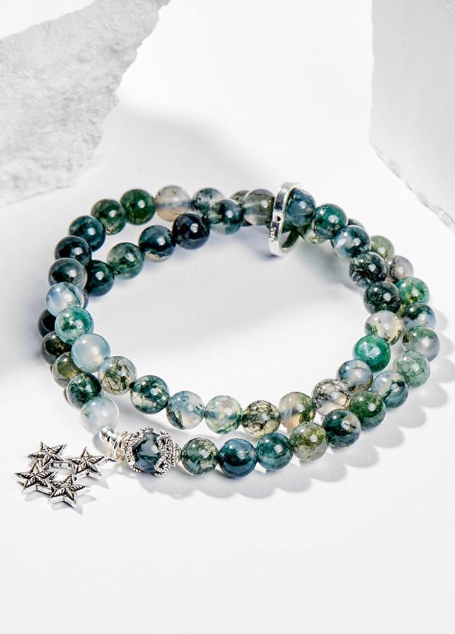 Từ lâu người ta đã biết đến đá băng ngọc thủy tảo giống như một sản phẩm vô cùng tuyệt vời và được biết đến với 1 tên gọi khách là "mã não rêu" vốn rất quen thuộc với phái đẹp. Từ đó giúp đem lại cho người sở hữu tài lộc, may mắn và bình an. Vòng Chuỗi Hạt Đeo Tay 2 Lines Đá Băng Ngọc Thủy Tảo Phối Charm Ngôi Sao (6mm) mệnh Mộc, Hỏa được làm từ đá băng ngọc thủy tảo vốn chưa hề mất đi vị trí "độc tôn" và rất được yêu thích đối với những người chơi phong thủy.