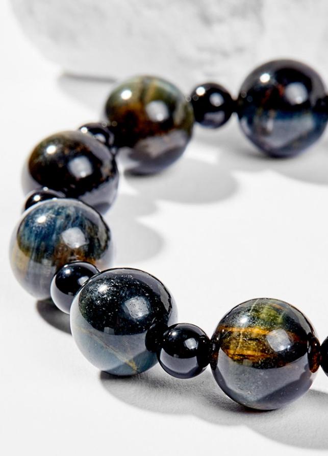 Vòng tay mắt hổ xanh đen phối thánh giá - Hợp mệnh thủy, mệnh mộc | Ngọc Quý Gemstones |