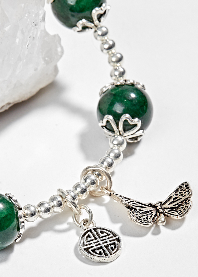 Vòng Thạch Anh Ưu Linh Xanh Phối Hoa Thạch anh xanh Đá Thạch Anh Xanh (Green Aventurine) còn được gọi là “Đá của Cơ Hội”, nó được cho là loại đá mang lại may mắn