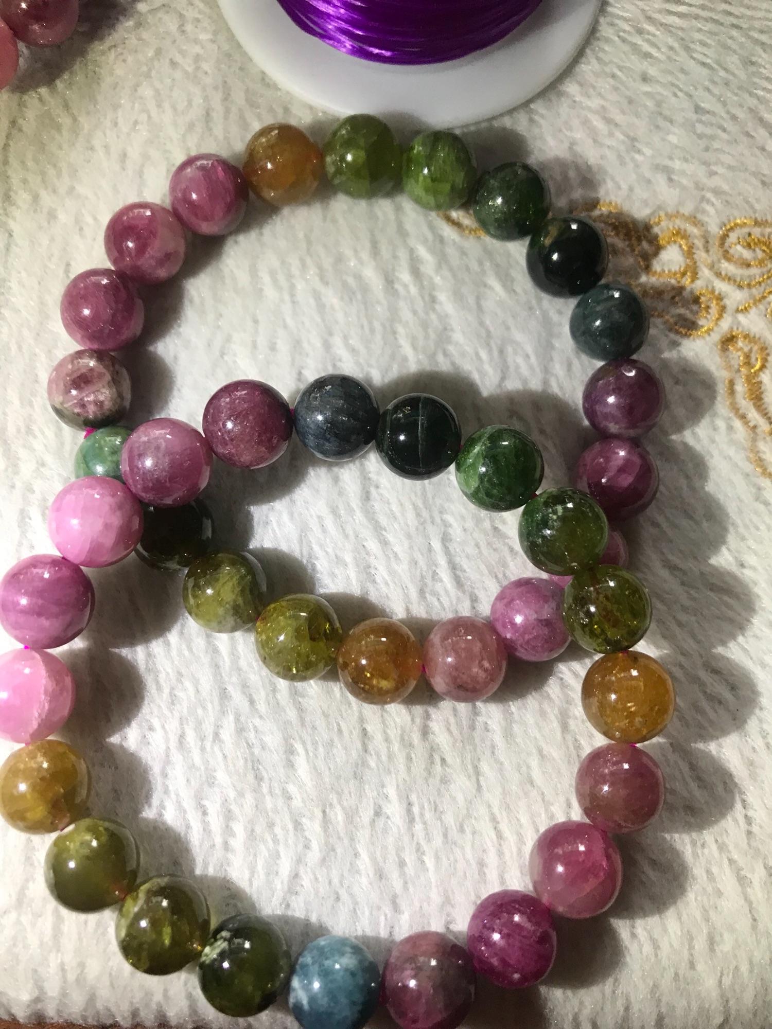 Vòng tay Nữ đá tourmaline dâu tây tự nhiên đa sắc tươi đẹp 9,5mm #godaptsunny #tourmaline #vòng