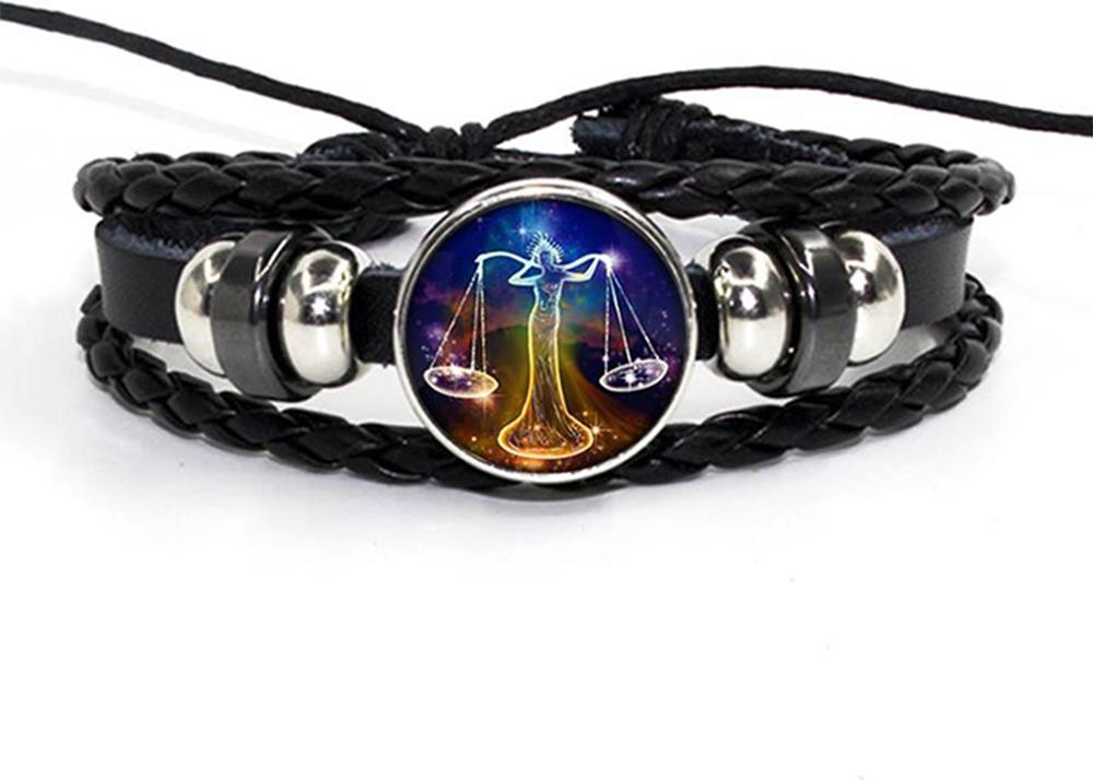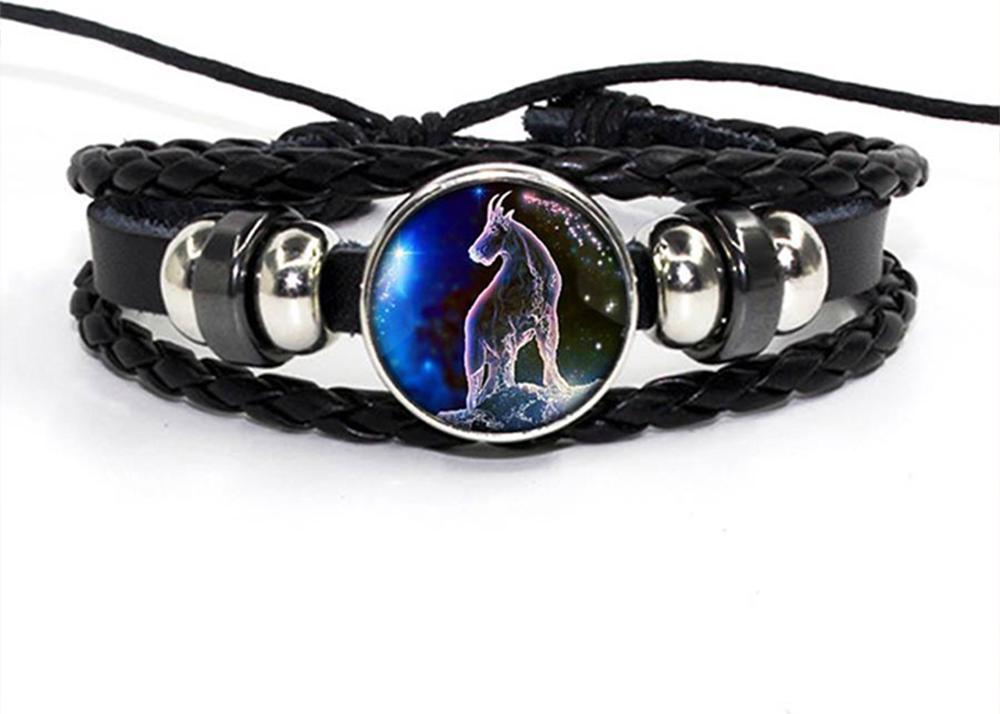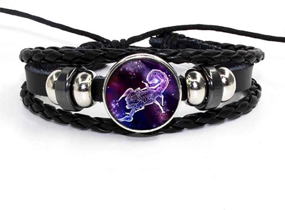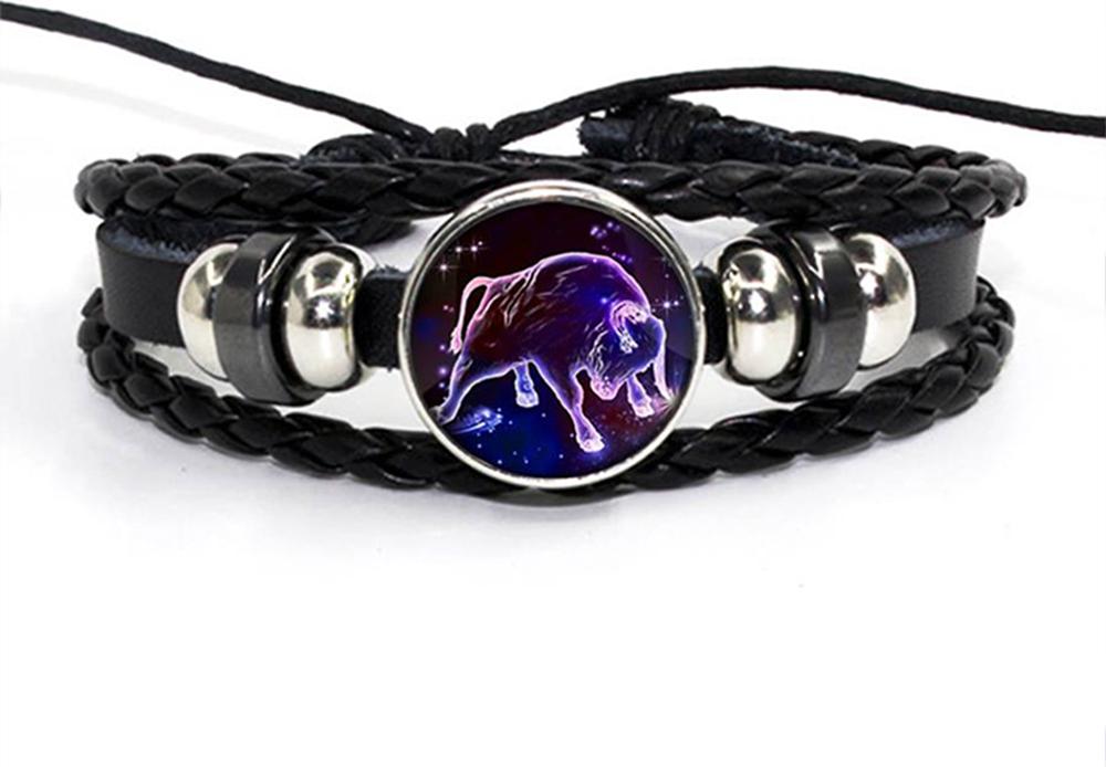 Vòng Đeo Tay Giả Cổ Dây Da Bệt Tết Phong Cách Retro Mặt Vòng Hình 12 Cung Hoàng Đạo Có Thể Điều Chỉnh Độ Rộng