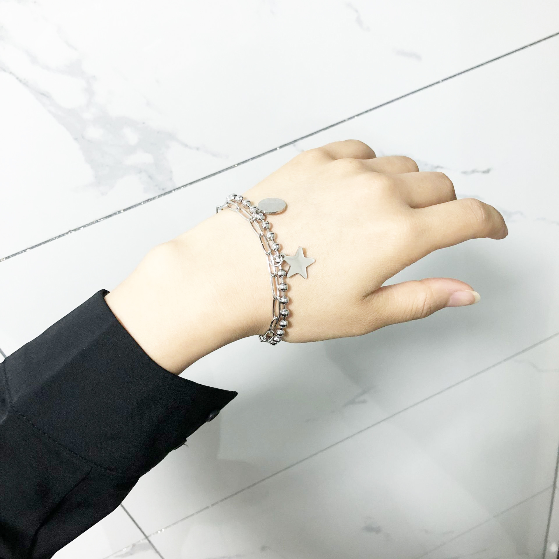 ✨Vòng đeo tay mix sao và vòng tròn phong cách punk cá tính