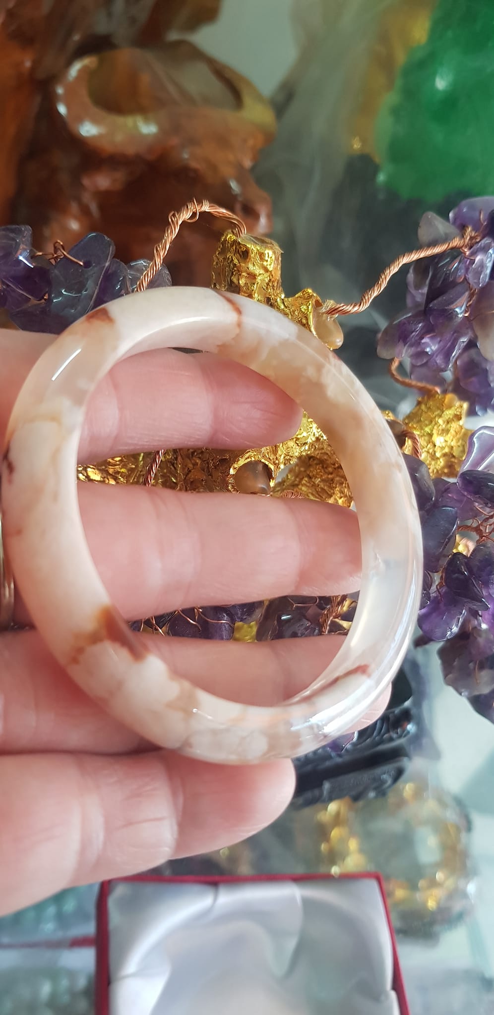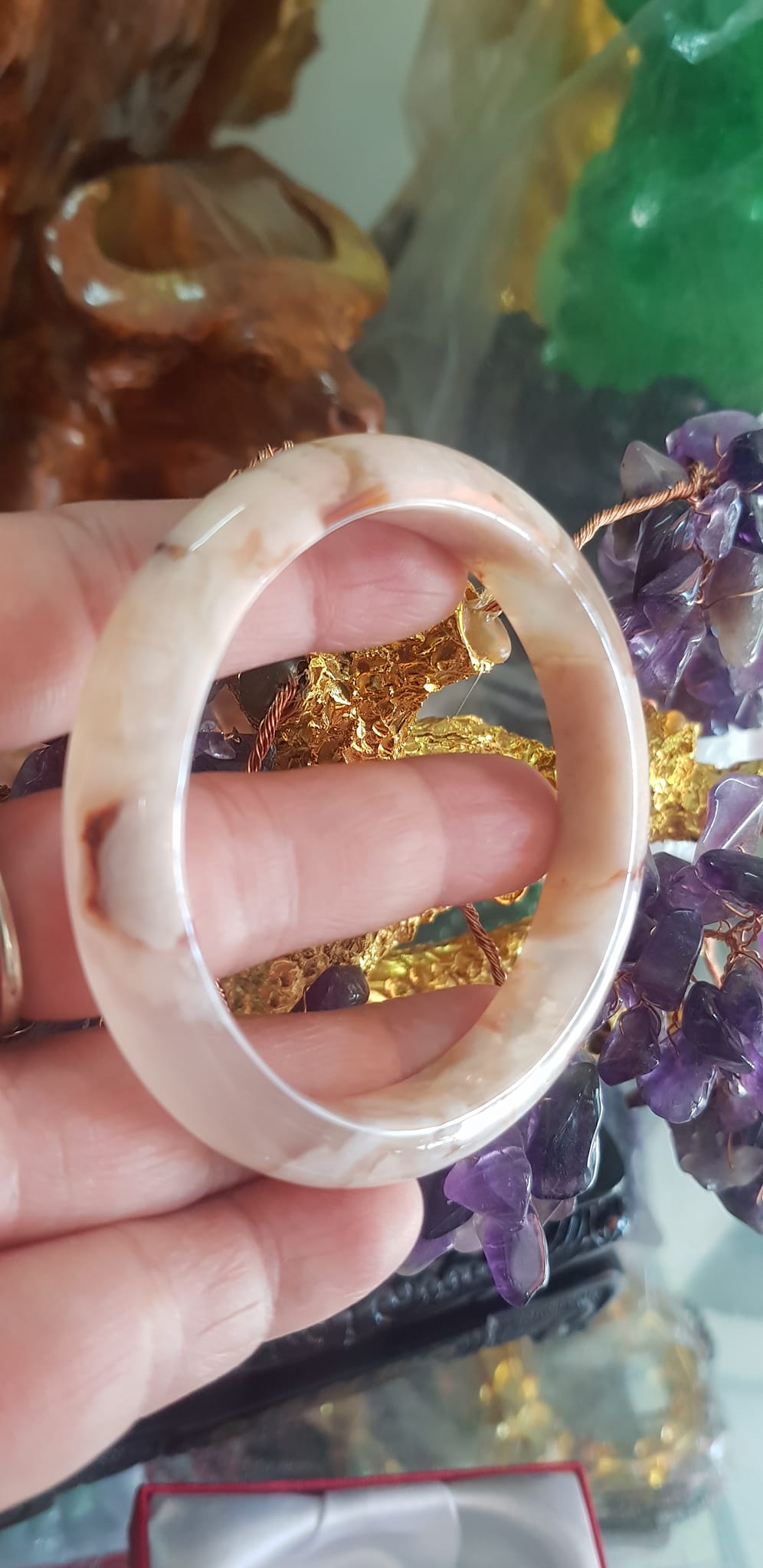 Vòng tay Nữ Bản Hẹ Mới Đá Mã Não Bông Tuyết Hồng nhẹ trắng trong bóng quá đẹp luôn ạ Ni 53mm x Cao 11mm x dầy 7mm Nữ Cân nặng 52kg - 55kg đeo