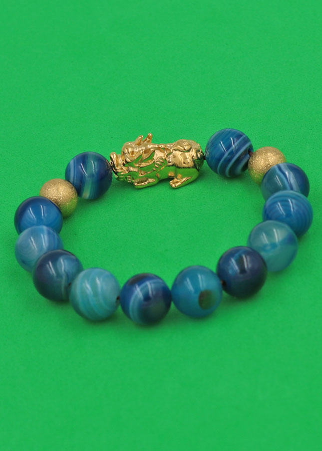 ✨Vòng đeo tay Thạch Anh Xanh Biển Sọc 12 ly - cẩn Tỳ Hưu Phong Thủy inox vàng VTAXBSTHHBV12 - hợp mệnh Mộc, mệnh Thủy
