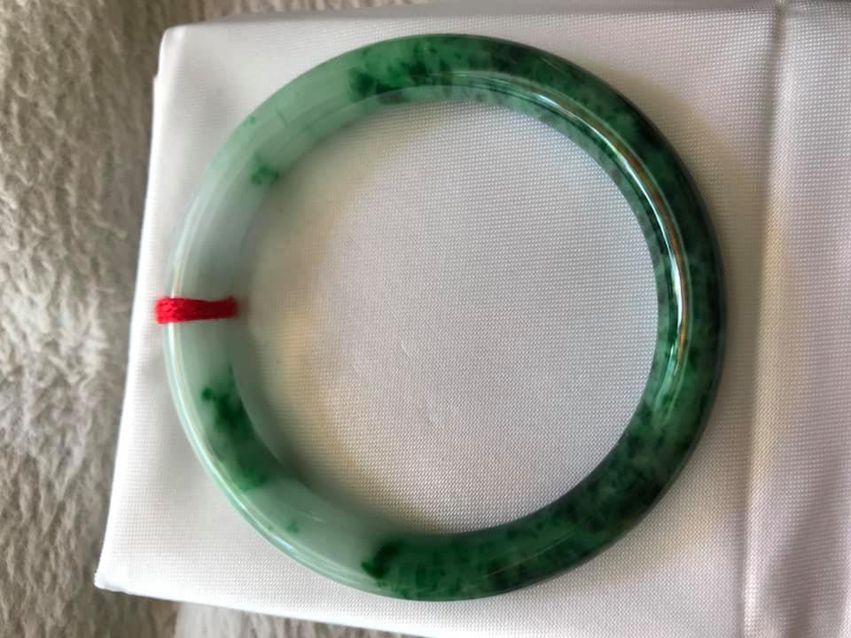 Vòng tay phong thủy Đá Cẩm thạch Tự nhiên Xanh SƠN THỦY LÝ 50MM x độ dầy 7,4mm Nữ 50kg - 55kg #sunny