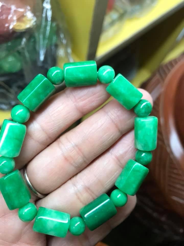 CHIẾC VÒNG ĐÁ CẨM THẠCH ĐẬU LÝ 51I MÀU XANH NGỌC TƯƠI ĐẸP NỮ Mệnh MỘC Mệnh HỎA 50Kg đến 59Kg Đeo - Chất liệu : đá cẩm thạch - Size vòng : Bên ngoài