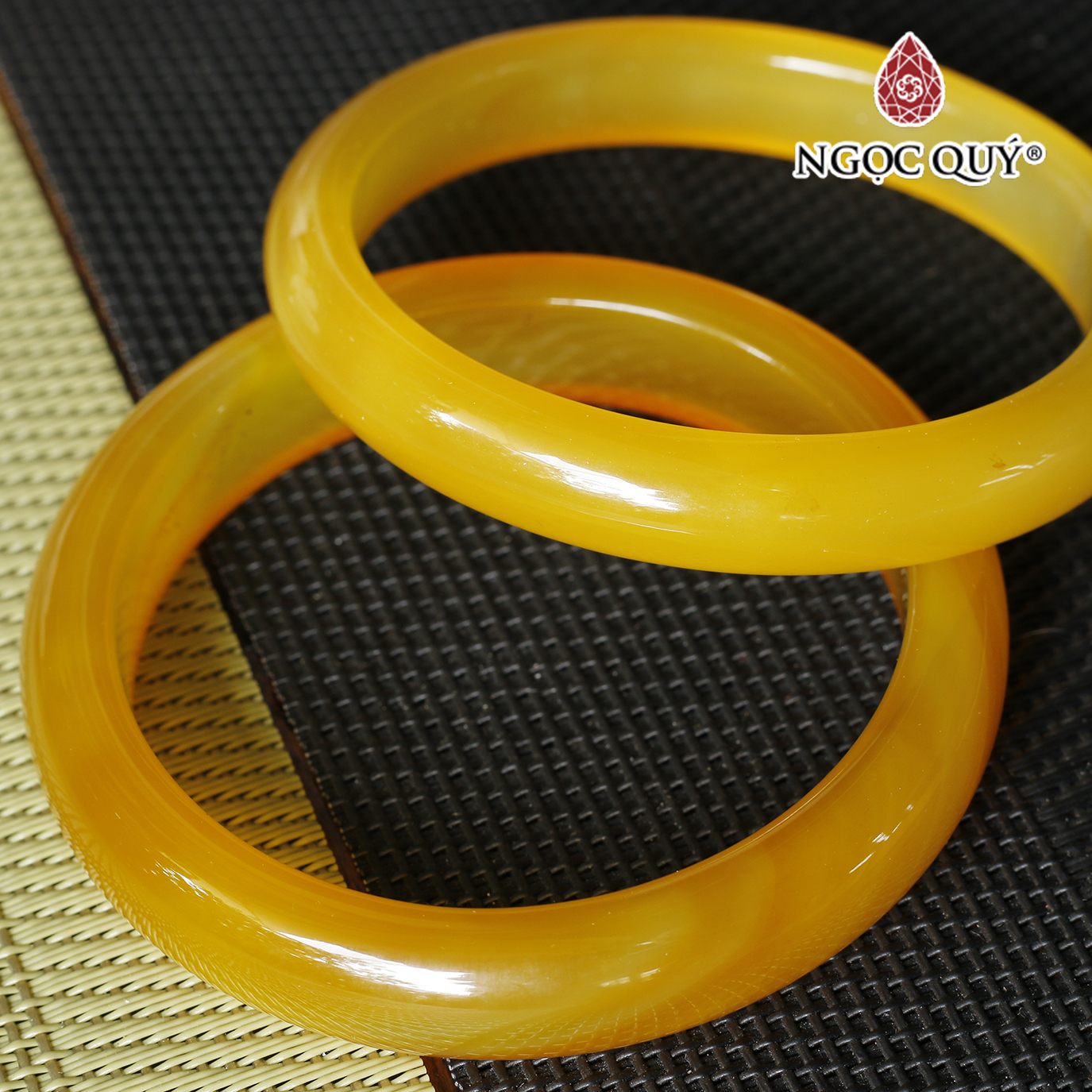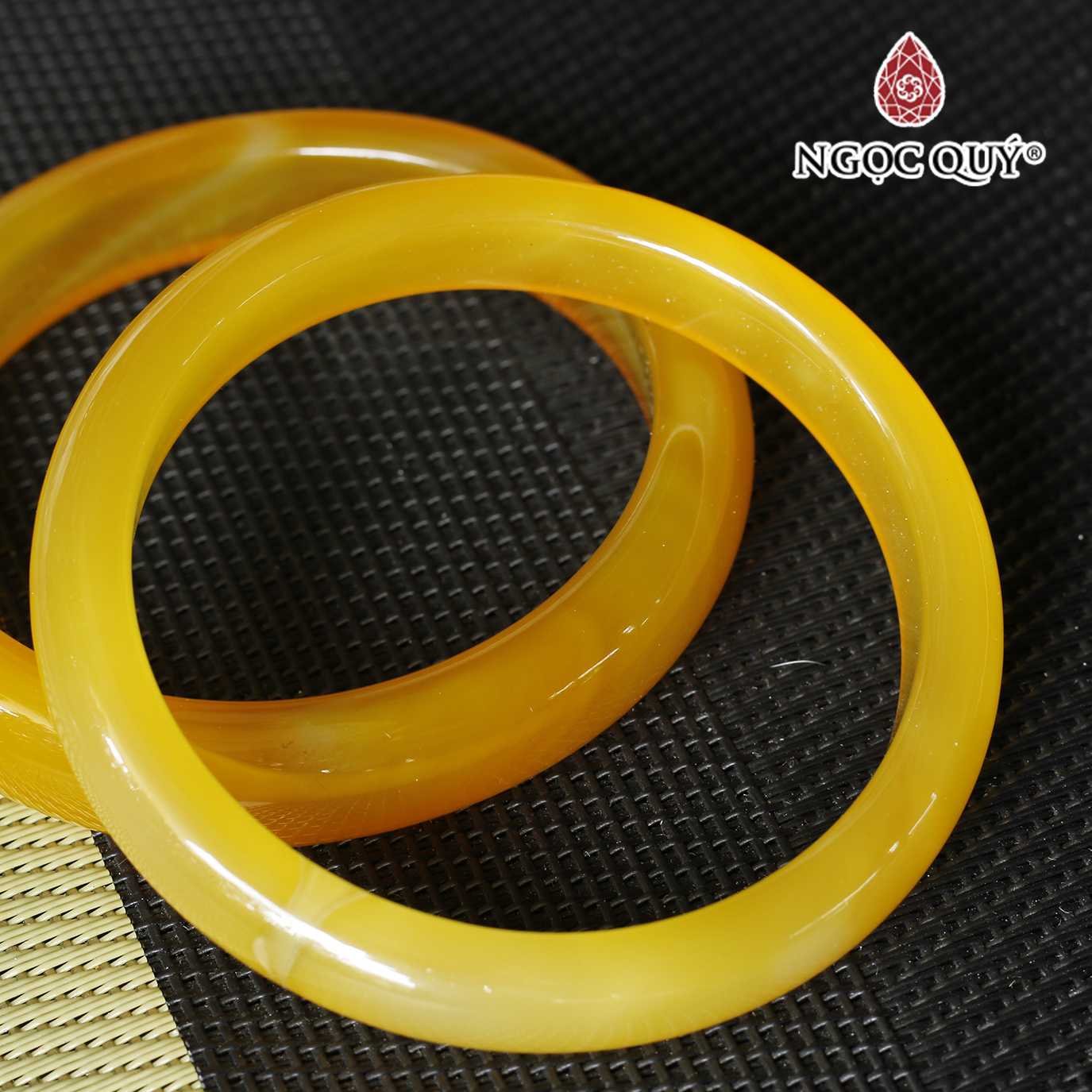 ✨Vòng mã não chalcedony vàng cam bản hẹ (bản 11-12mm) - Ngọc Quý Gemstones