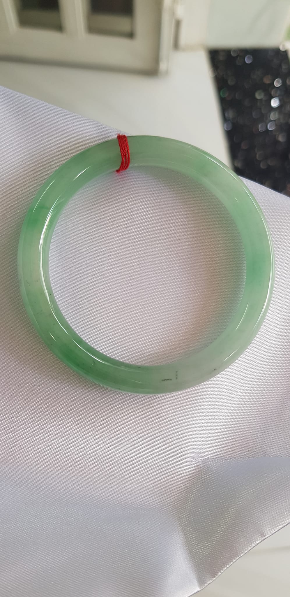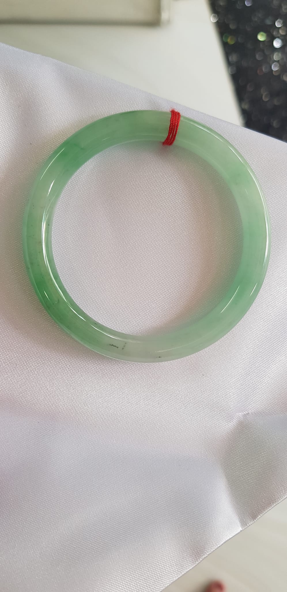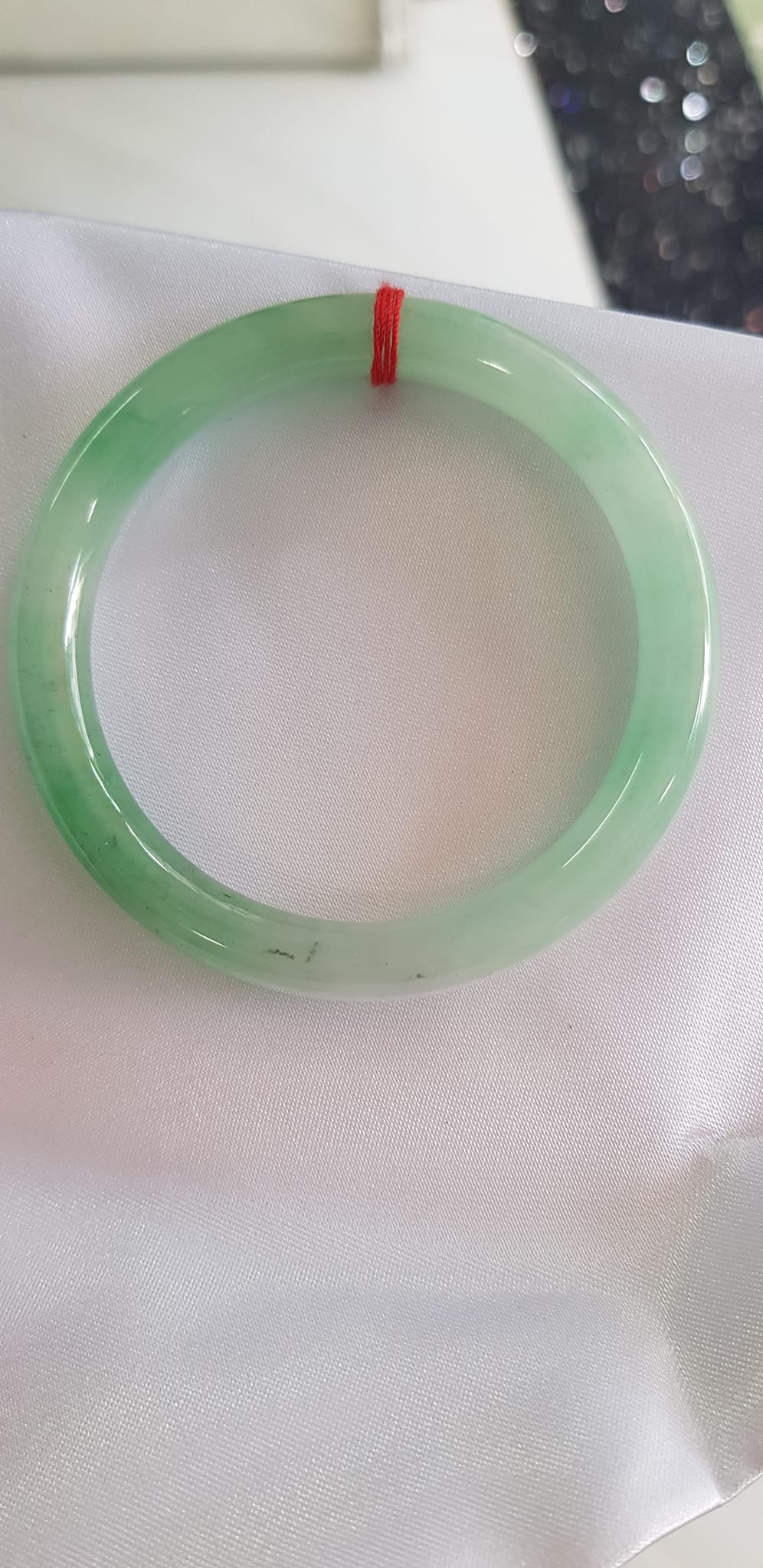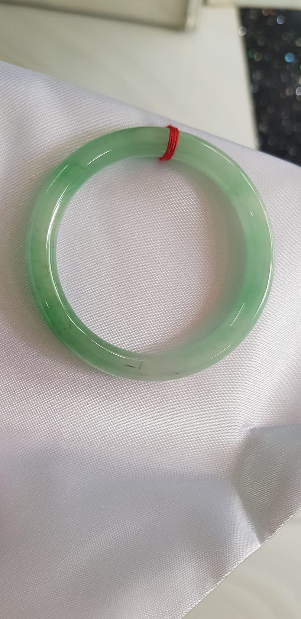 Vòng cẩm thạch Ngọc Đẹp Lý A SỊN 50mm x 7mm tự nhiên màu xanh ngọc bóng điểm xanh nữ 50kg - 54kg ạ