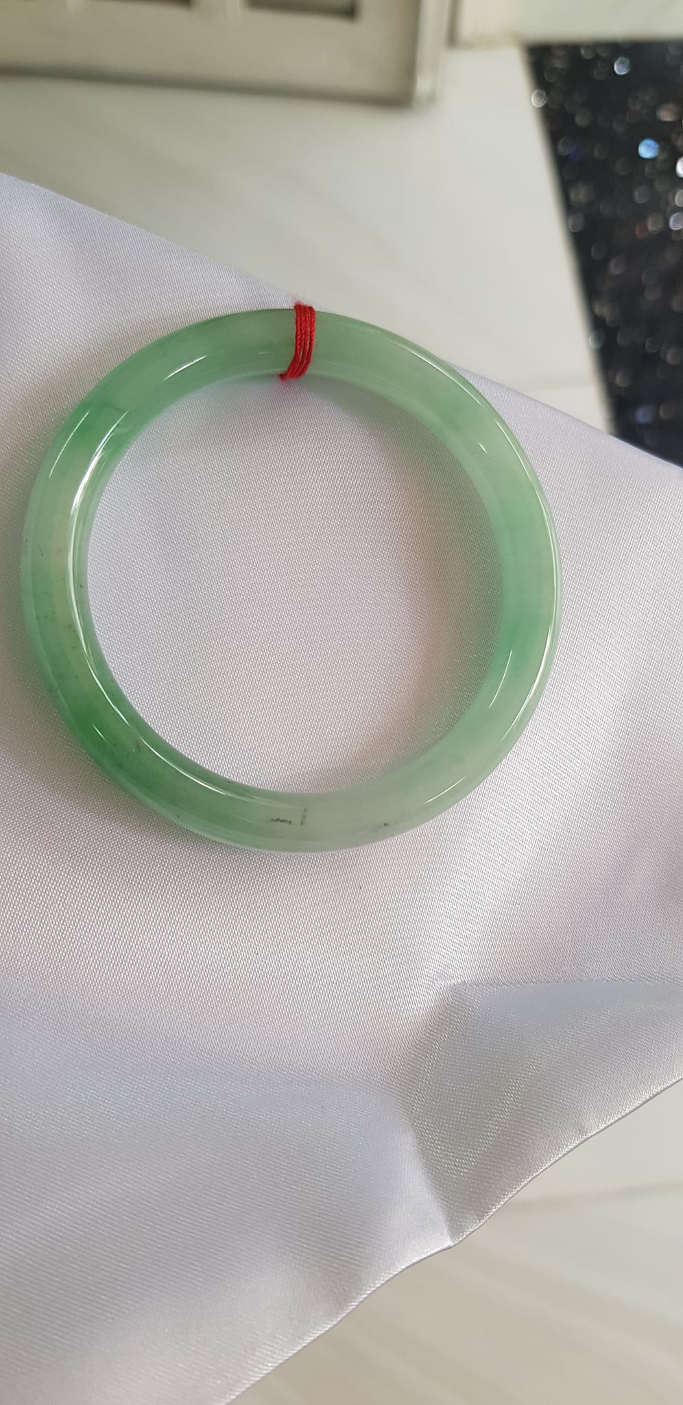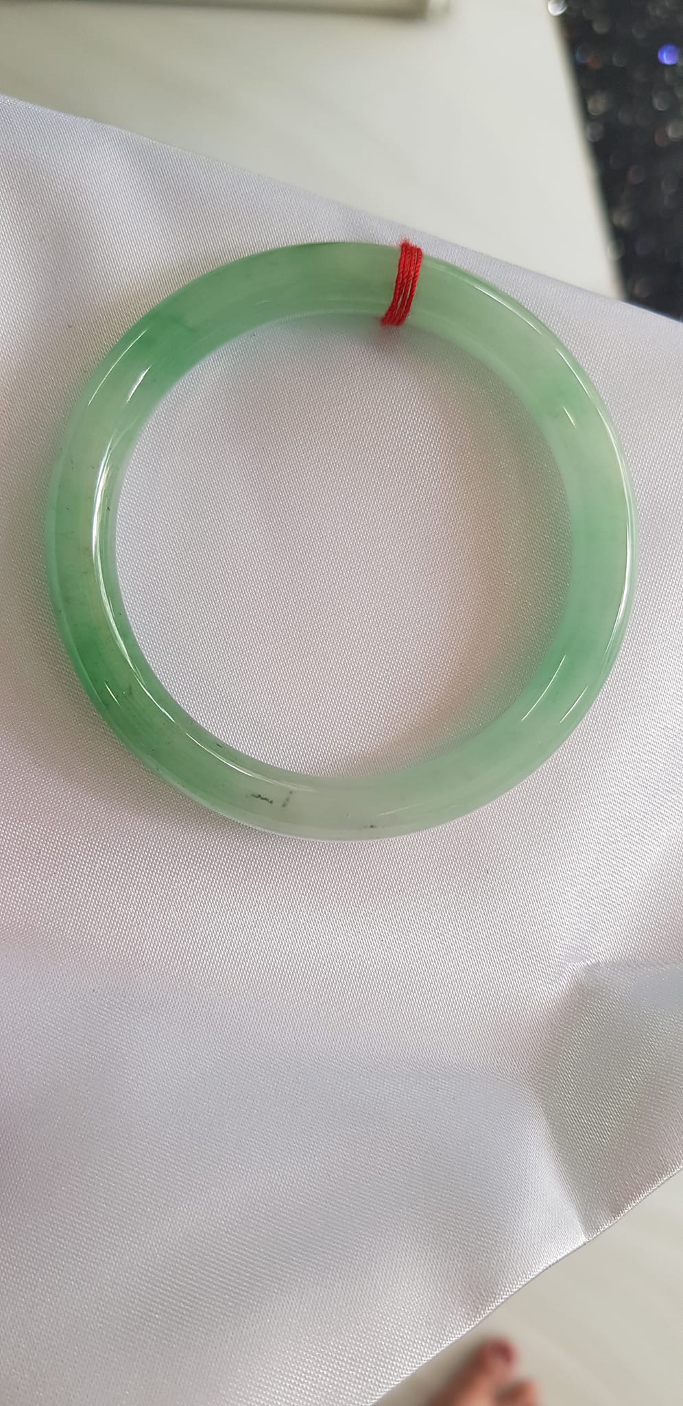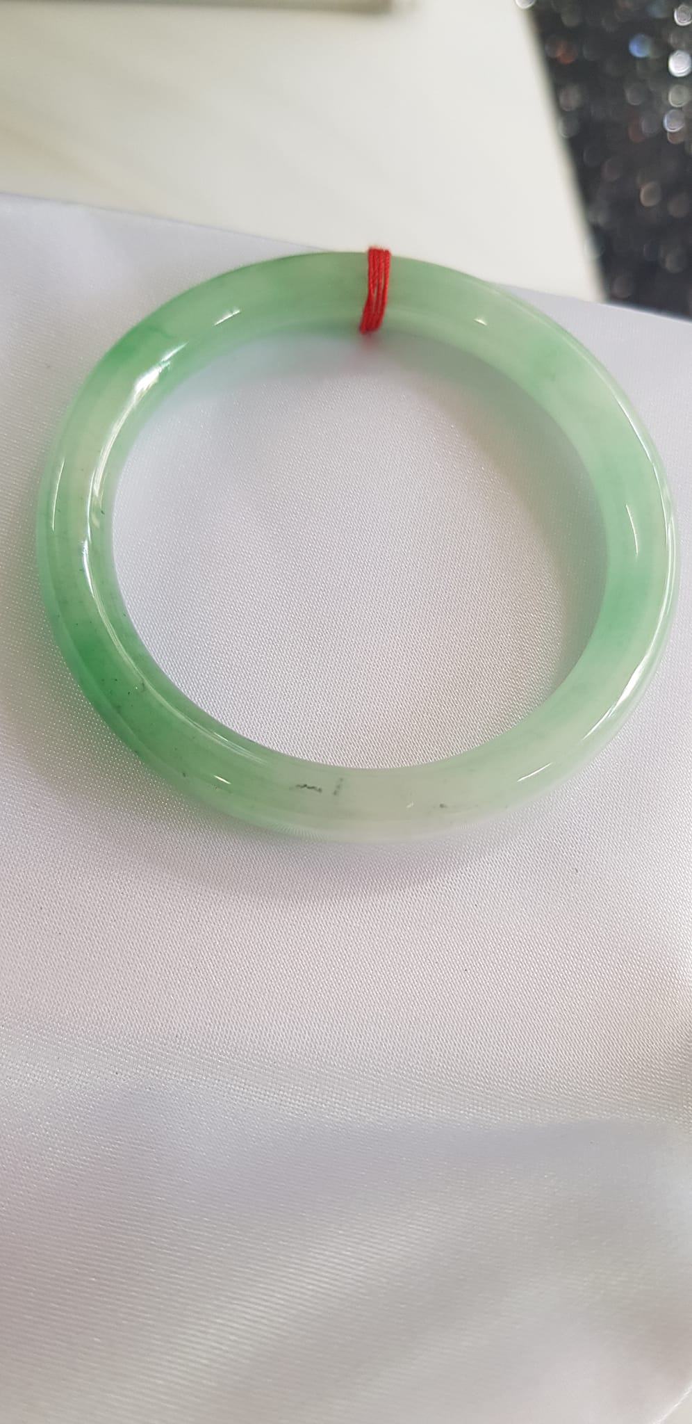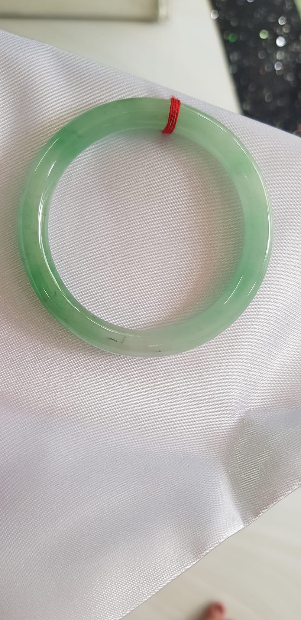 Vòng cẩm thạch Ngọc Đẹp Lý A SỊN 50mm x 7mm tự nhiên màu xanh ngọc bóng điểm xanh nữ 50kg - 54kg ạ