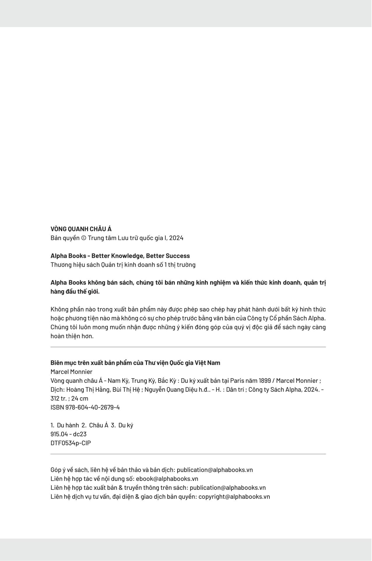 Cuốn sách viết về hành trình du ký của Marcel Monnier đến với nhiều quốc gia tại châu Á, trong đó có An Nam - thời điểm đó là một trong những thuộc địa của Pháp. Sau chuyến đi này, ông đã viết một cuốn sách có tựa đề chung là Vòng quanh châu Á, gồm 3 tập: