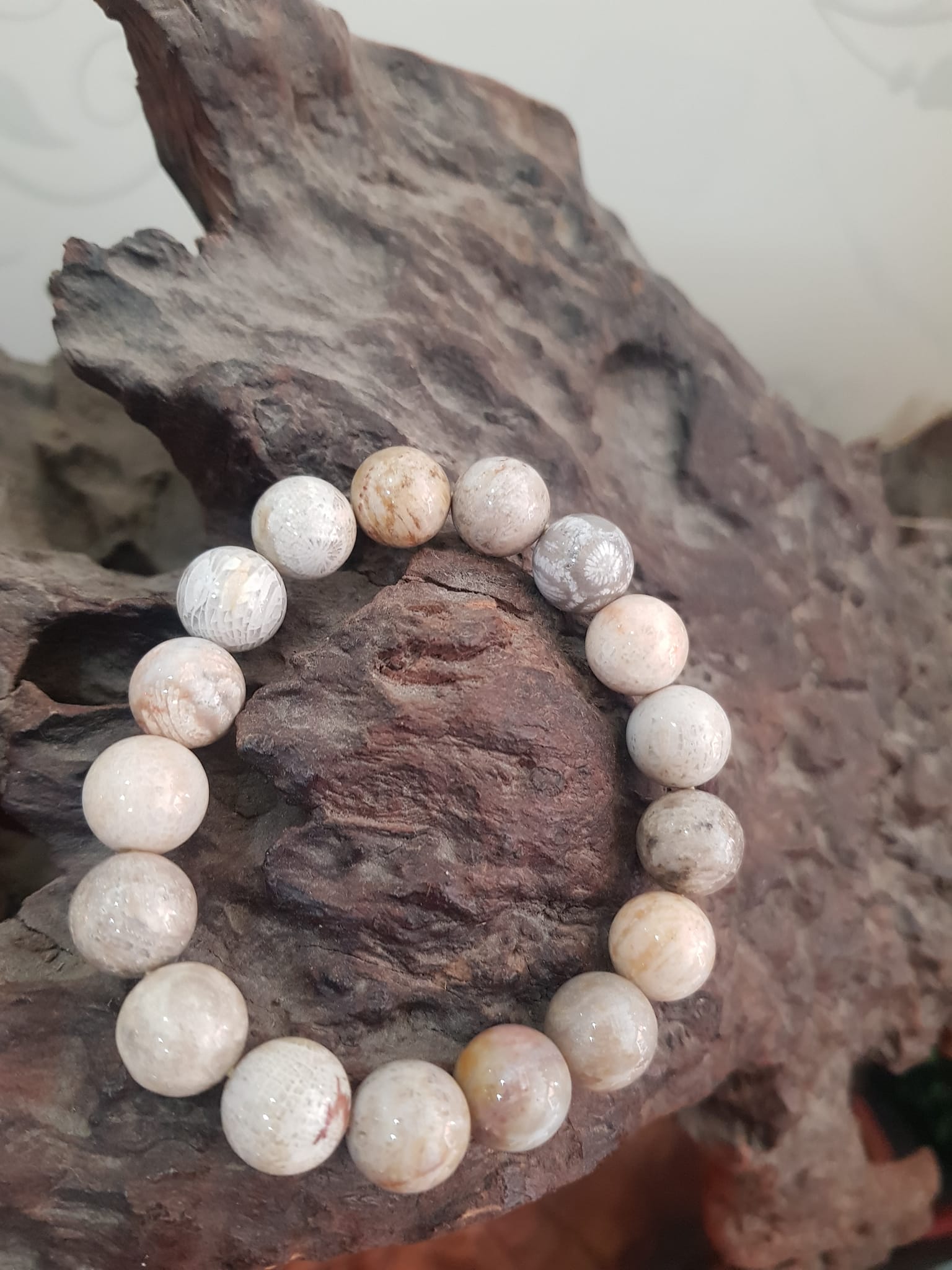 VÒNG TAY LU THỐNG ĐÁ SAN HÔ HÓA THẠCH: Nếu nói Phượng Hoàng là Linh thú bất tử thì San Hô Hóa Thạch là viên đá của sự tái sinh. San Hô Hóa Thạch trải qua quá