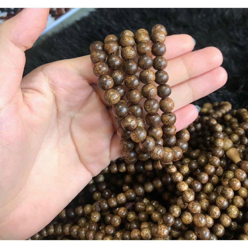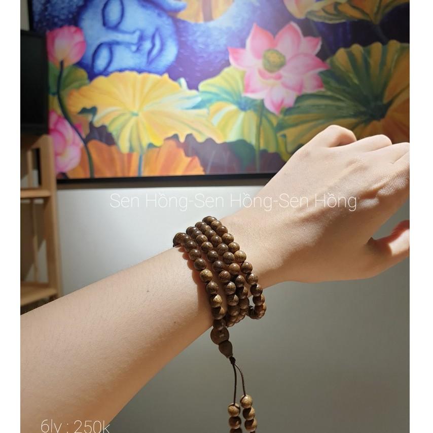 Chuỗi 108 hạt trầm hương được nuôi trồng tại Việt Nam, với tuổi trầm 4-5 năm. Vòng có mùi thơm nhẹ của tinh dầu trầm. Từ xa xưa trầm hương được cho là lá bùa bình an cho người đeo.