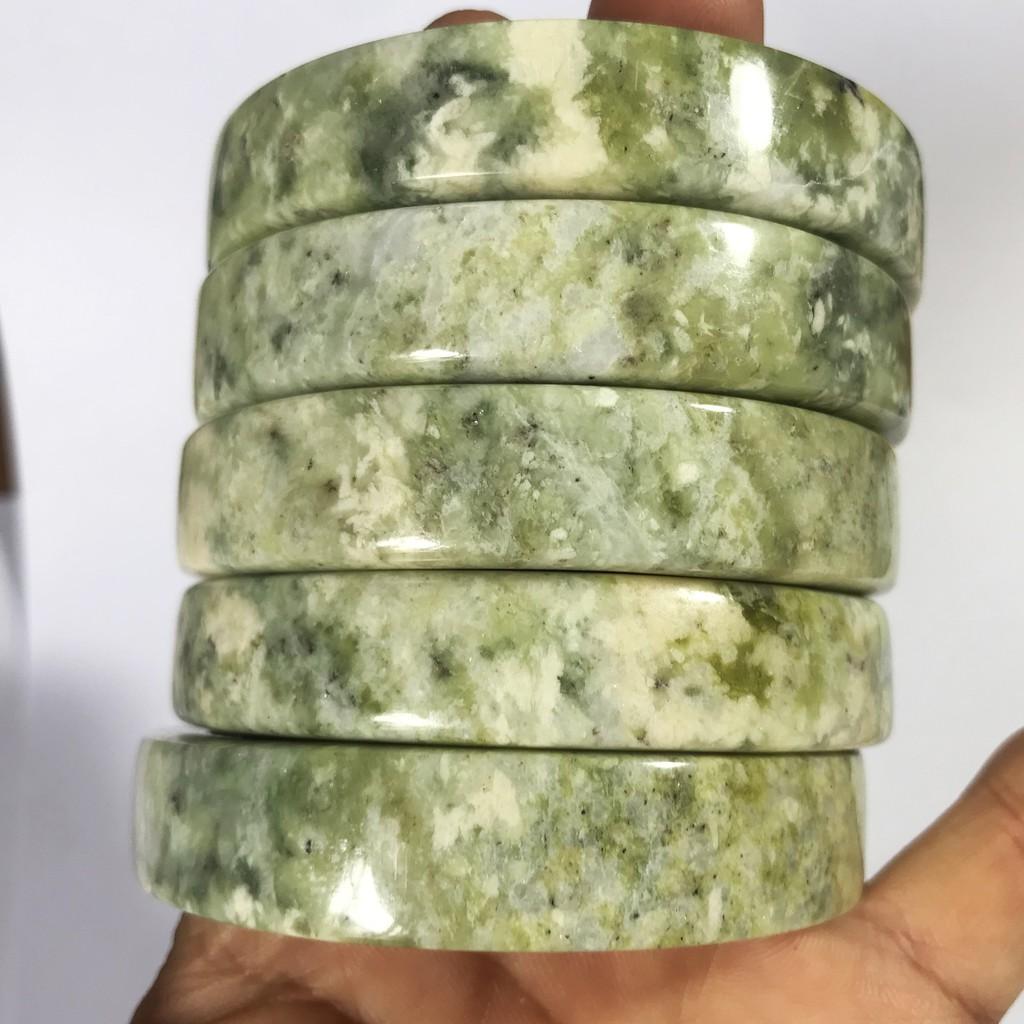Vòng tay Nữ Đá Cẩm Thạch mới TR Lý 57 mm x cọng 7,5mm Màu Xanh lý tươi trắng 2 bên đều vòng đẹp Nữ 55kg - 64kg đeo đẹp món quà tặng chính mình